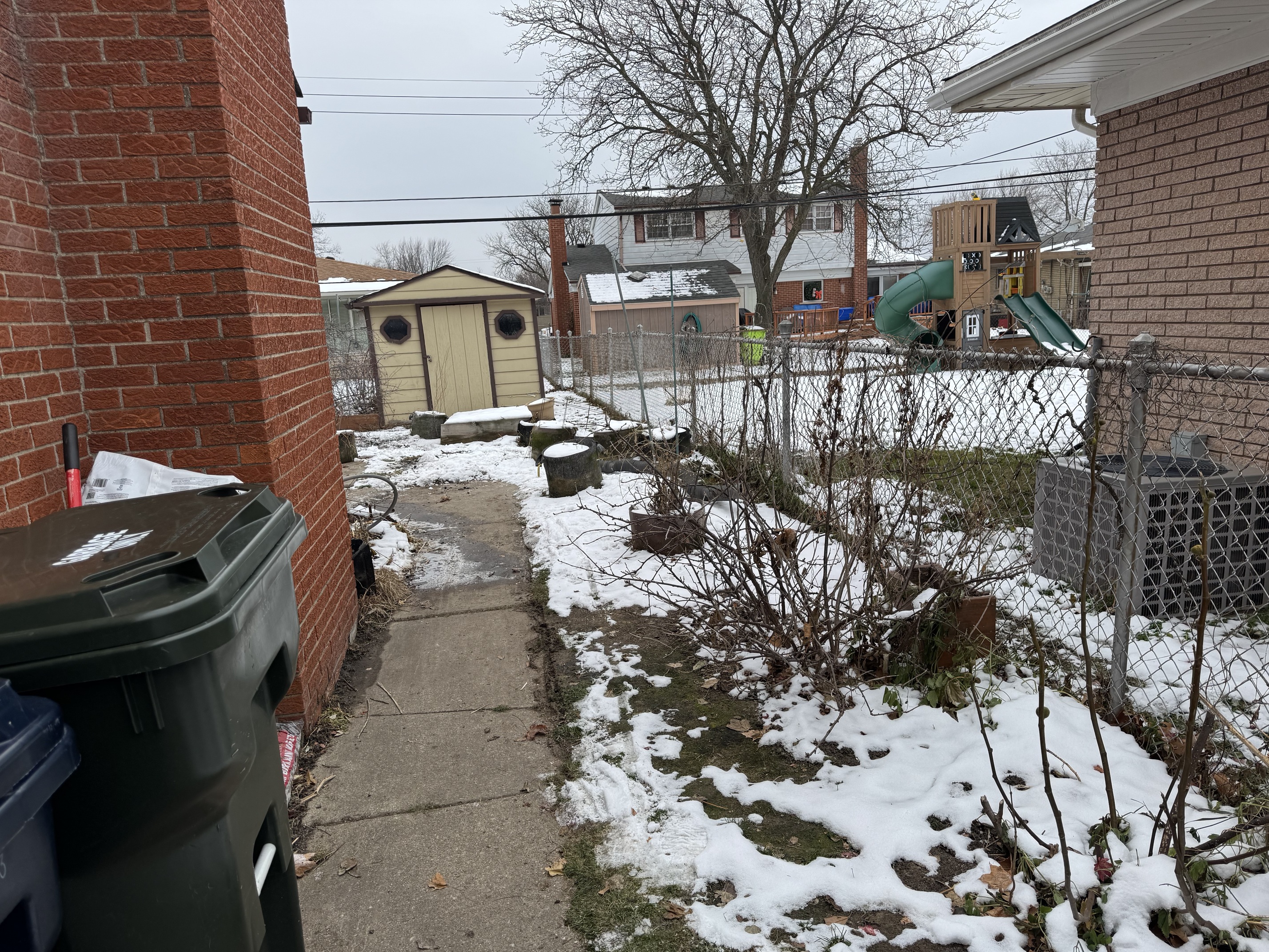 Houses here in suburban paradise are close and the ground between them warms a touch.