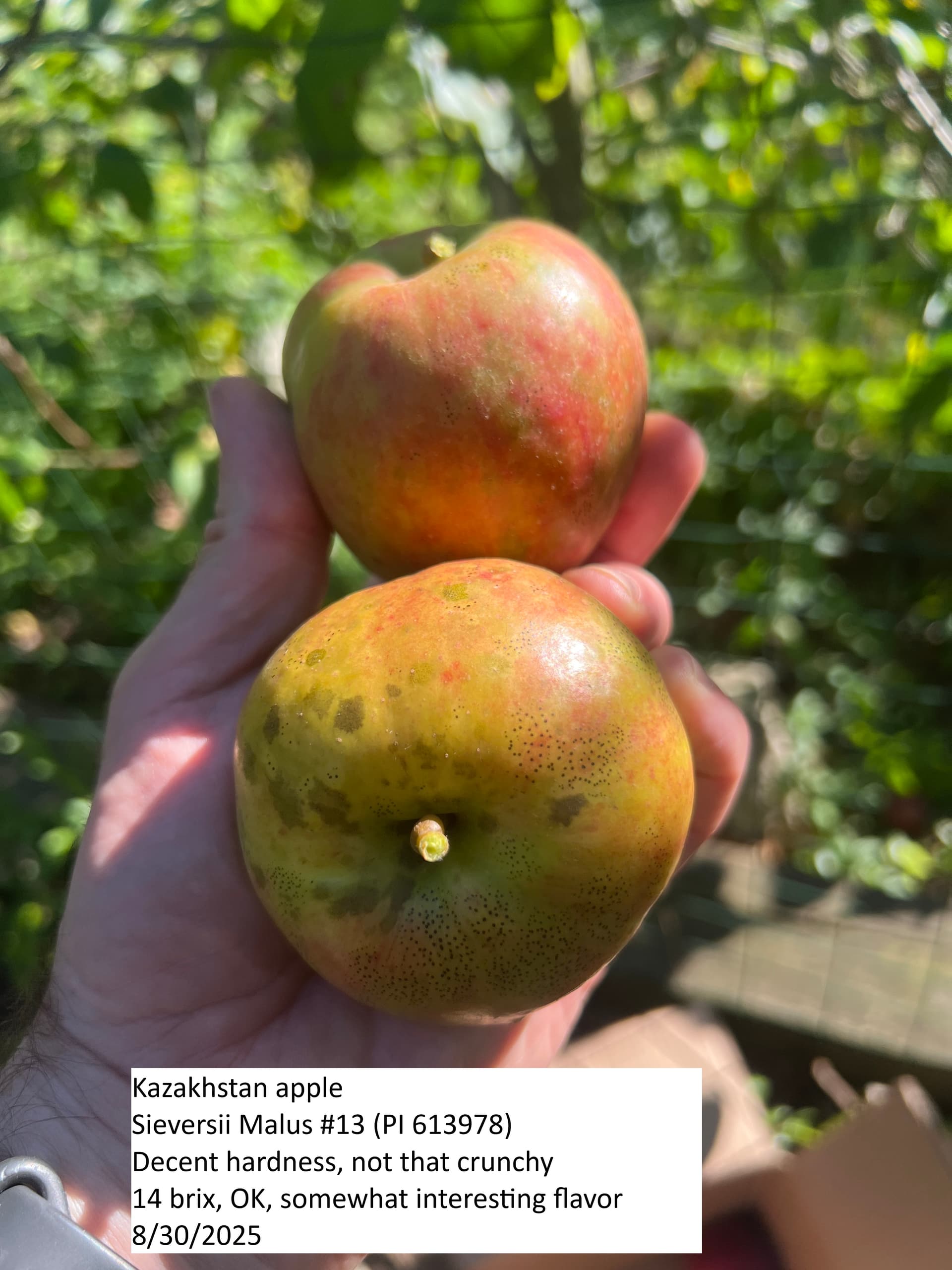 Wild Ancestor: The original domesticated apple is Malus sieversii, a type of wild apple (crabapple) found in the [Tien Shan mountains](Google?