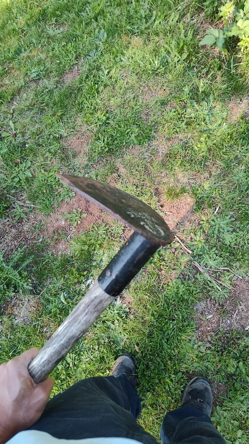 AND we hav a little old hoe for small weeds, and and old grubbing hoe just like like Audiophile’s.