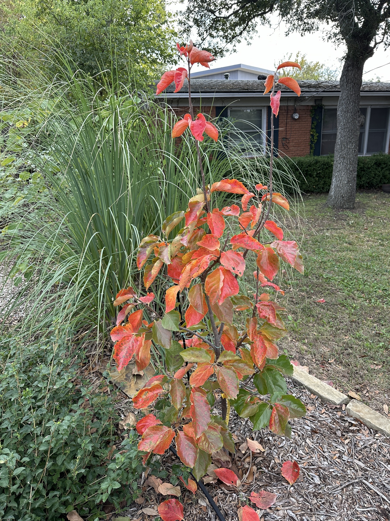 I grow a couple dozen kaki persimmon trees, and this one that I bought as Great Wall is one of the slowest growing of all of them. It has droopy branches and doesn’t seem inclined to grow upright at all. It does have nice fall colors this year, but so do most of my persimmons with a few exceptions (Rojo Brillante and Giboshi have yellow leaves, and no orange or red at all like most of the others). I’m not entirely convinced it is Great Wall because the fruit is so large. It’s the largest persimmon fruit I’ve ever grown, and a friend who is familiar with Great Wall says they are much smaller - just a bit bigger than Nikita’s Gift. The fruit quality is quite good - astringent but very juicy. It reminds me most of Eureka in terms of the shape and size of the fruit, but Eureka has distinct lobes, and this persimmon has even larger and rounder fruit. I suspect that Just Fruits and Exotics may have sent me another variety called Lindy’s Giant that I’ve seen on their website. The picture and description sound similar to what I have, but I don’t know for sure. But if the real Great Wall is more like Tecumseh, then it’s probably a fine tree. Tecumseh is my most productive persimmon cultivar. It is very productive and very late. It has consistently vibrant fall foliage. It’s a very vigorous tree that wants to get quite large. The fruit are small for kaki, and I slice and dehydrate most of them, but I think the quality is good. Larger fruits like Giombo or Eureka are much easier to harvest and slice, but they haven’t been as productive for me as Tecumseh. I will probably try to get Great Wall scionwood from Fruitwood Nursery this winter to graft and compare to what I have.