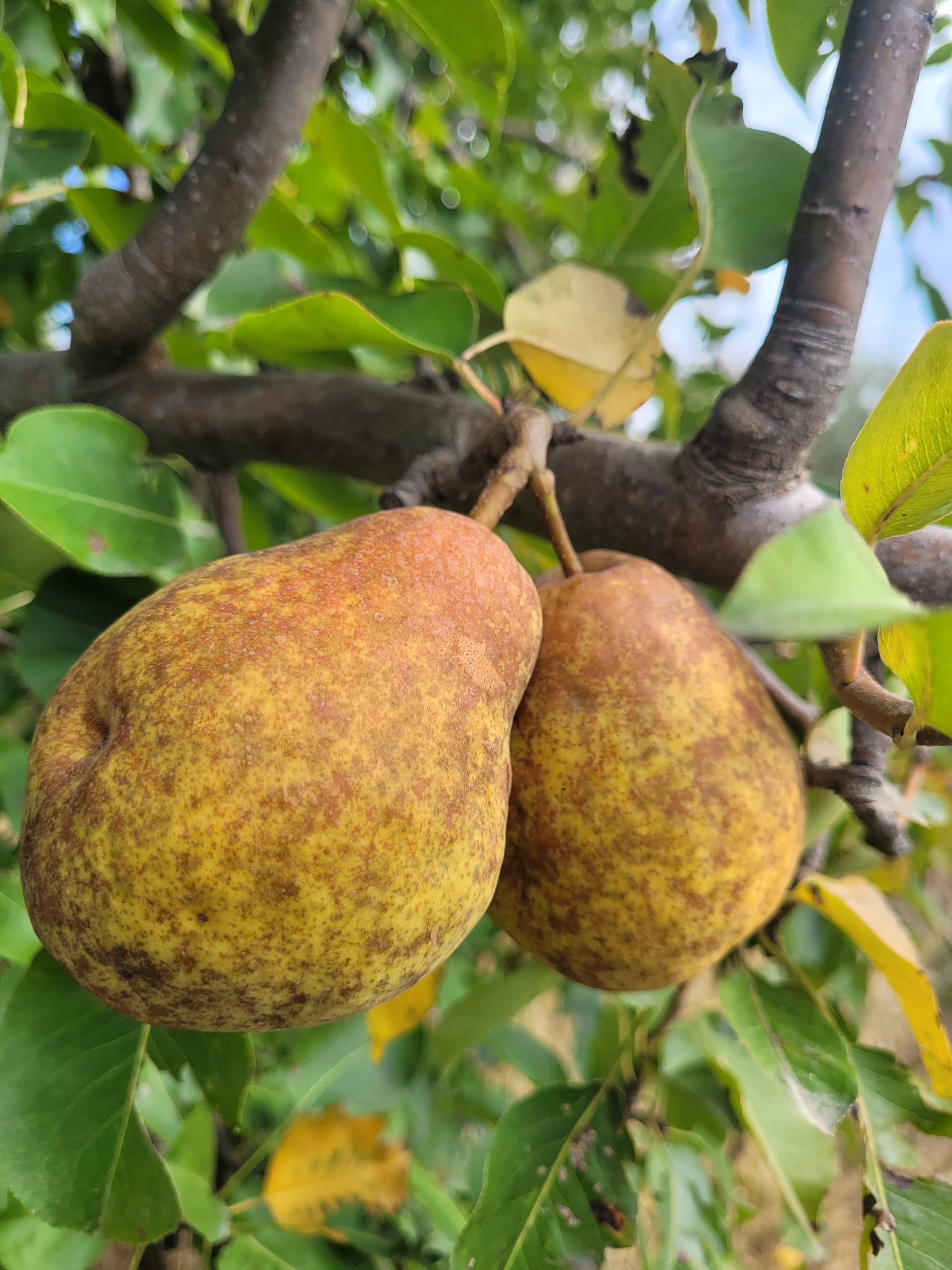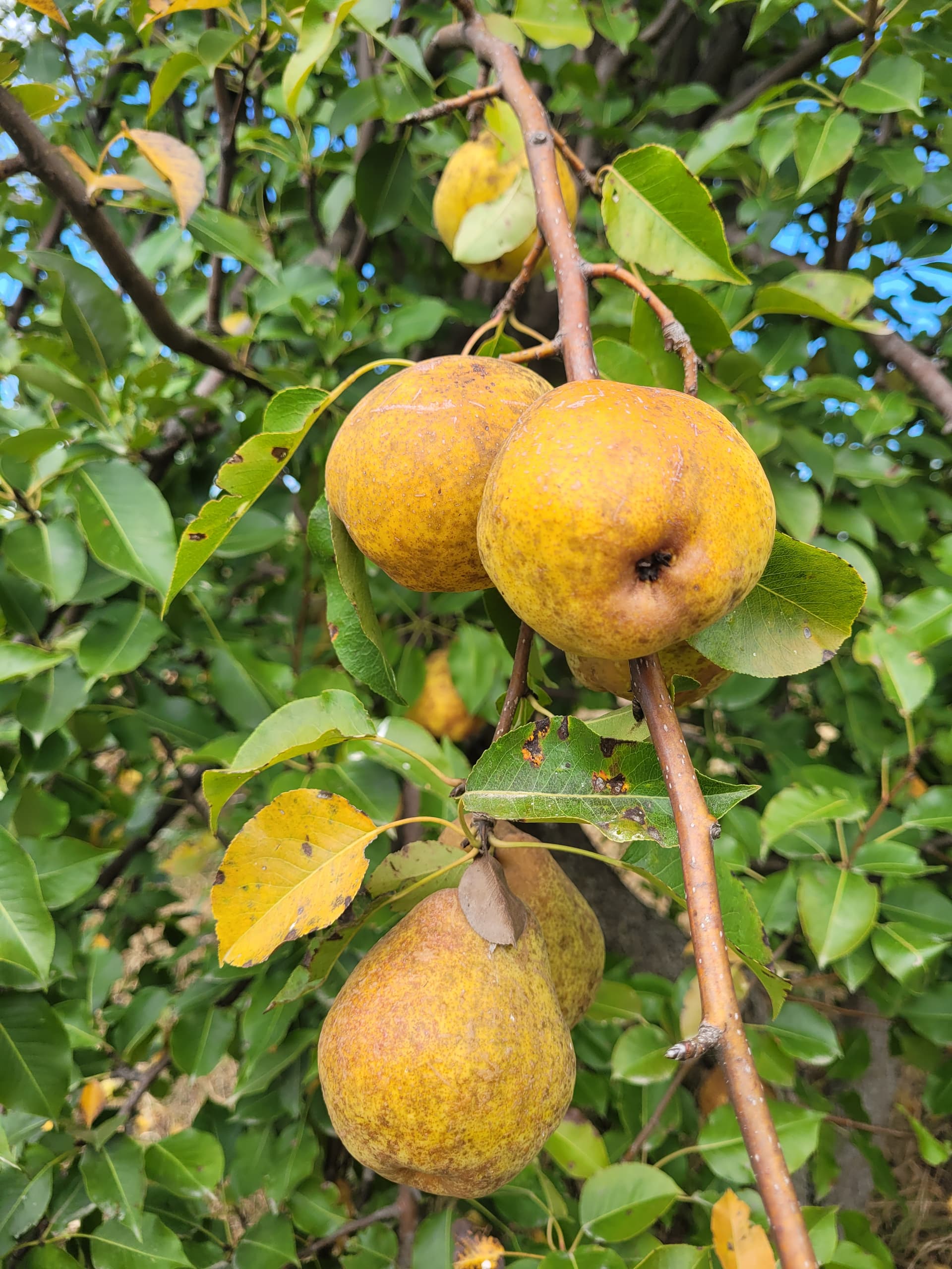 Duchesse d’angouleme is the only pear I know of that looks and ripens like that. It’s also the only pear I grow with lumpy skin.