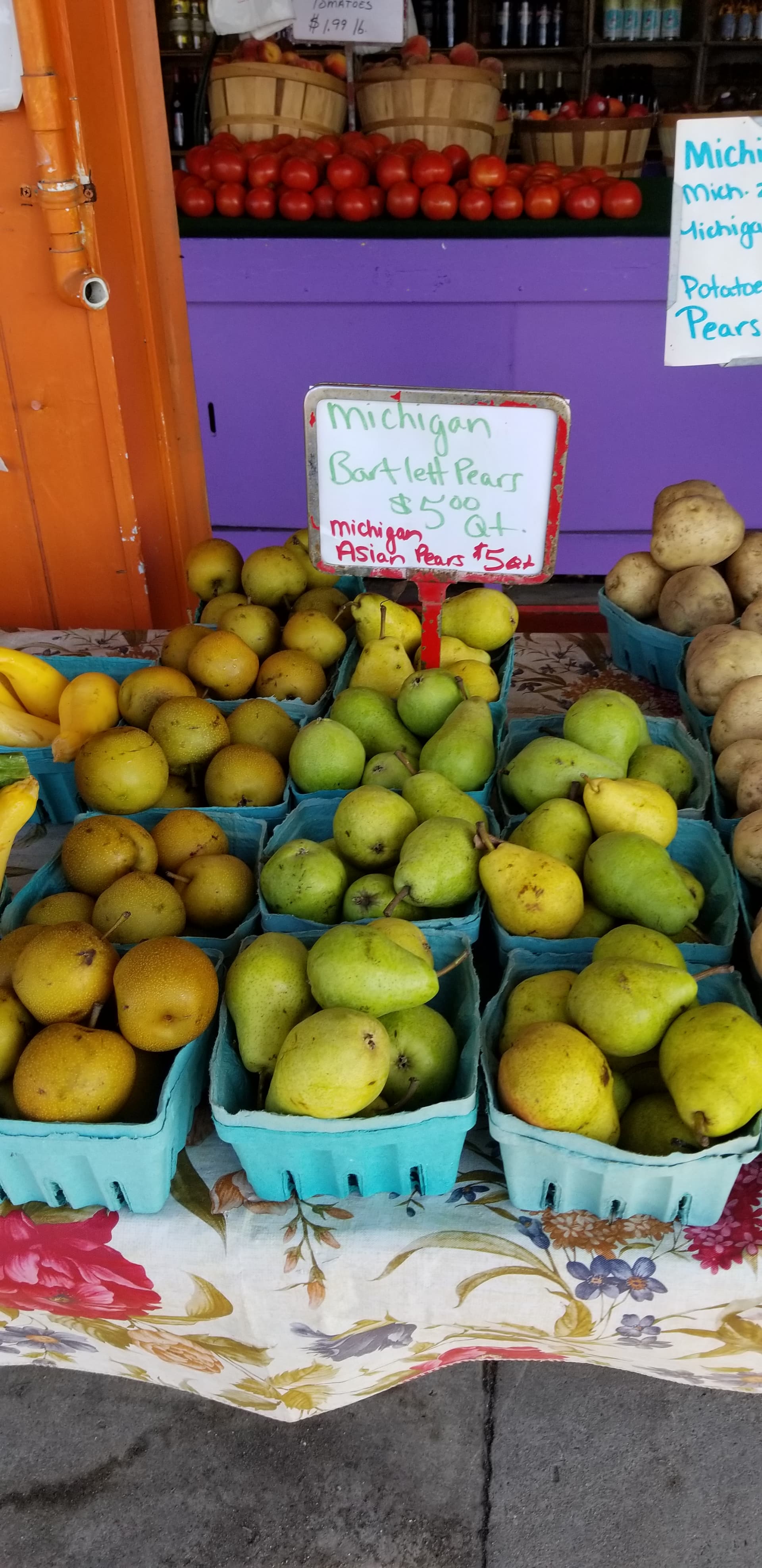 Very nice. Here in the west michigan tourist trap, I imagine myself tending to my fruit stand fridays 10-2, and saturdays 9-1, training the fruit hounds to go out of their way to buy my varied pears. I would have to compete with this: