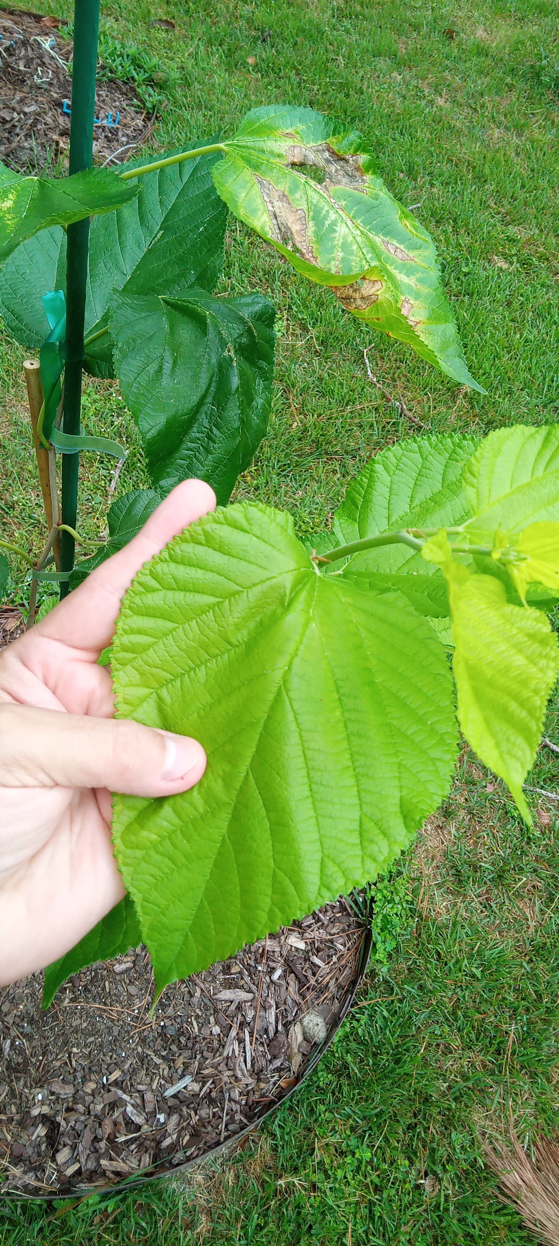 Iād think a young tree like mine only in the ground for a bit more than a month would produce smaller leaves than an older tree.