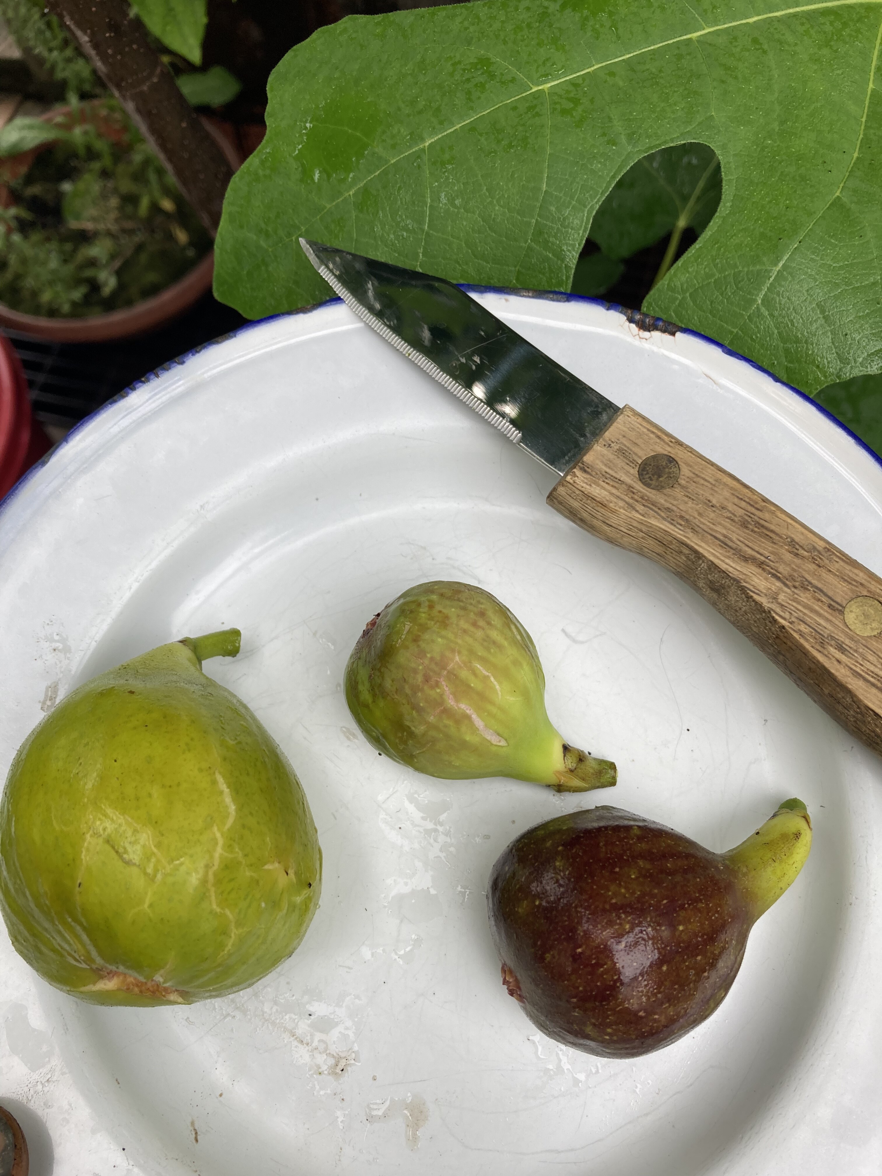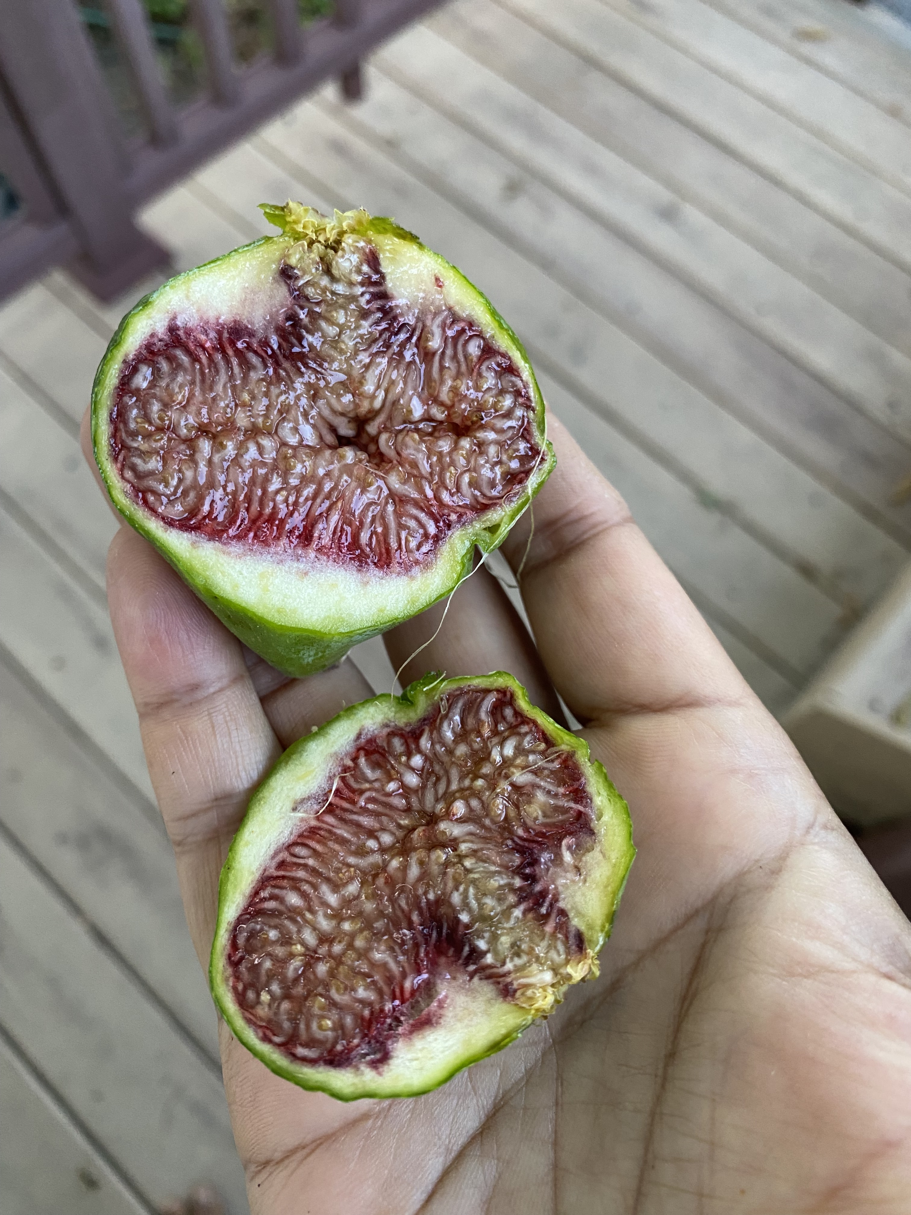 Verdolino, this one might be my favorite green fig, it has an interesting elongated shape, sweet rich Adriatic berry flavor, tight eye, doesn’t split in rain, makes great breba and early enough maincrop for my short season location. The plant is also healthy, productive and not overly vigorous so it’s good for container culture. I need to make some duplicates!