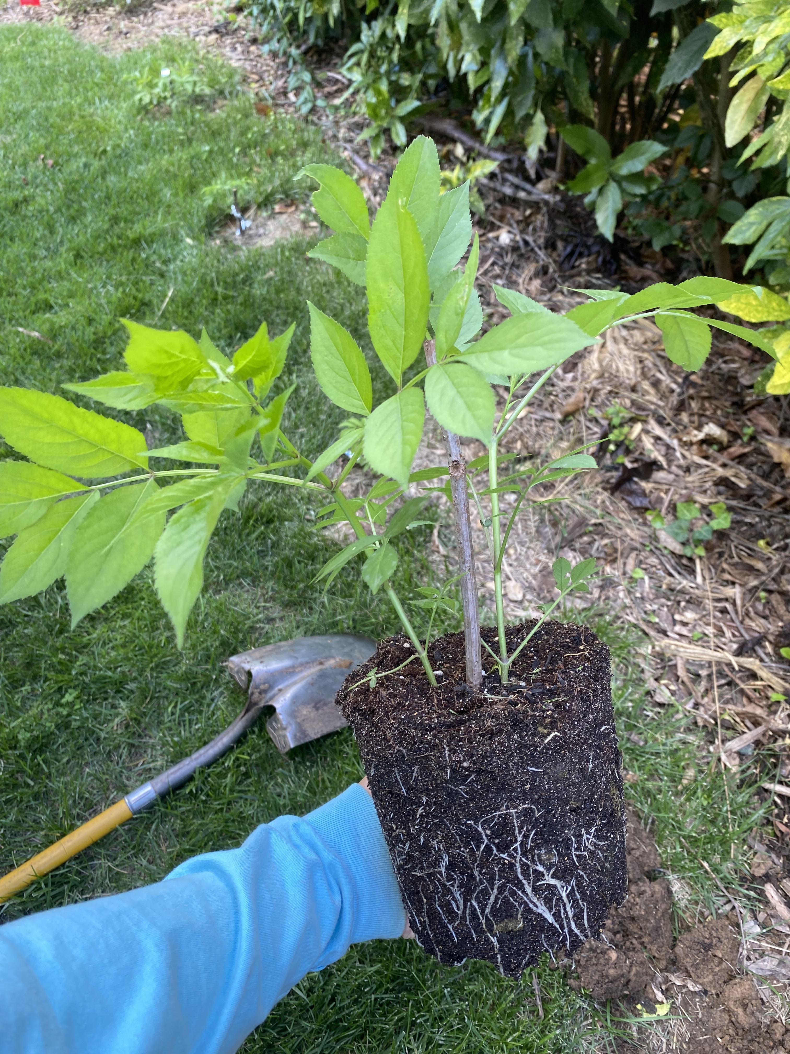 Elderberry cuttings went bananas since dividing them into 1g’s two weeks ago. Took one out to replace a failed cutting I bought this winter, and the roots looked like this! Quite the change from the picture 2 weeks ago. I’m wondering if they really liked the sand- I was out of perlite, but had some leftover sand and mixed it in with the coir and a little compost. Although, I also added alfalfa pellets. Regardless, it’s ridiculously fun to do this (root and “unwrap”), and I think I’ll be making as many as I have space for every winter and set up a free table at the street.