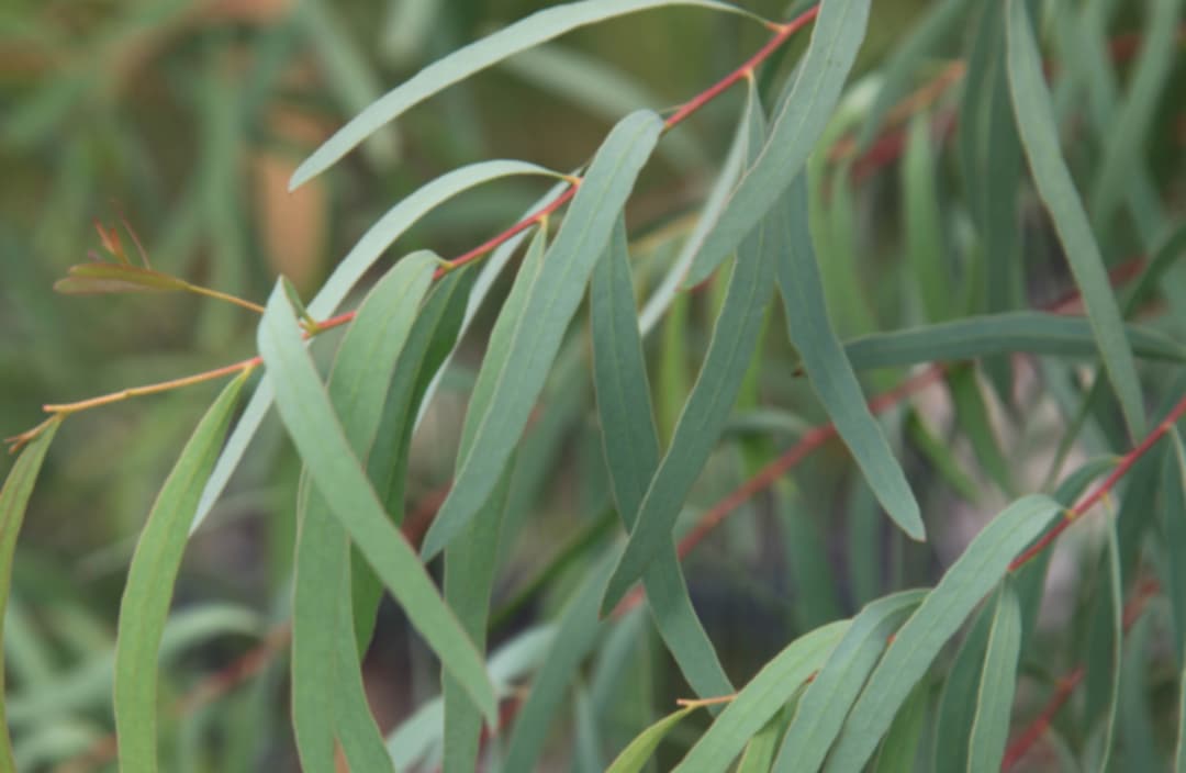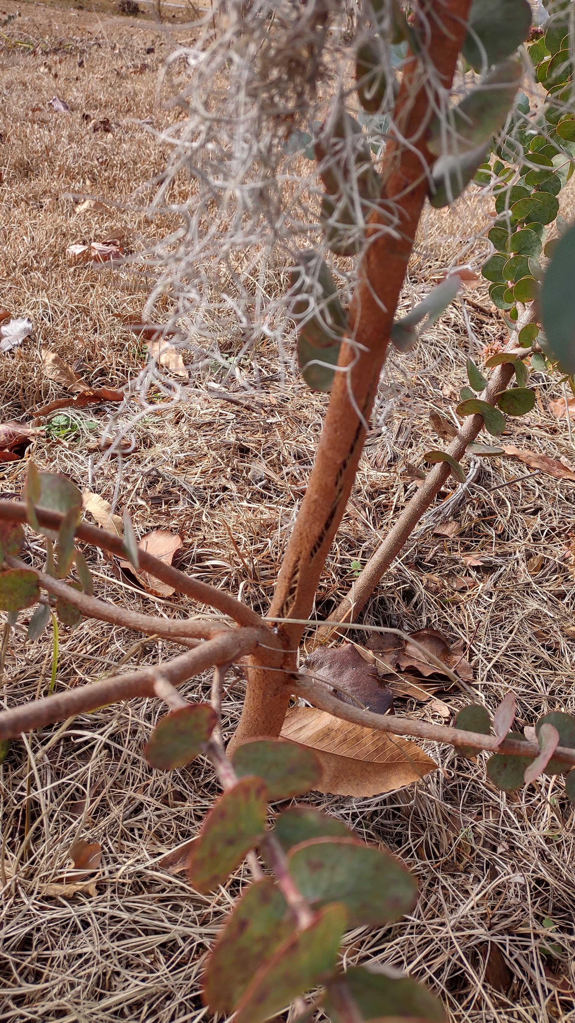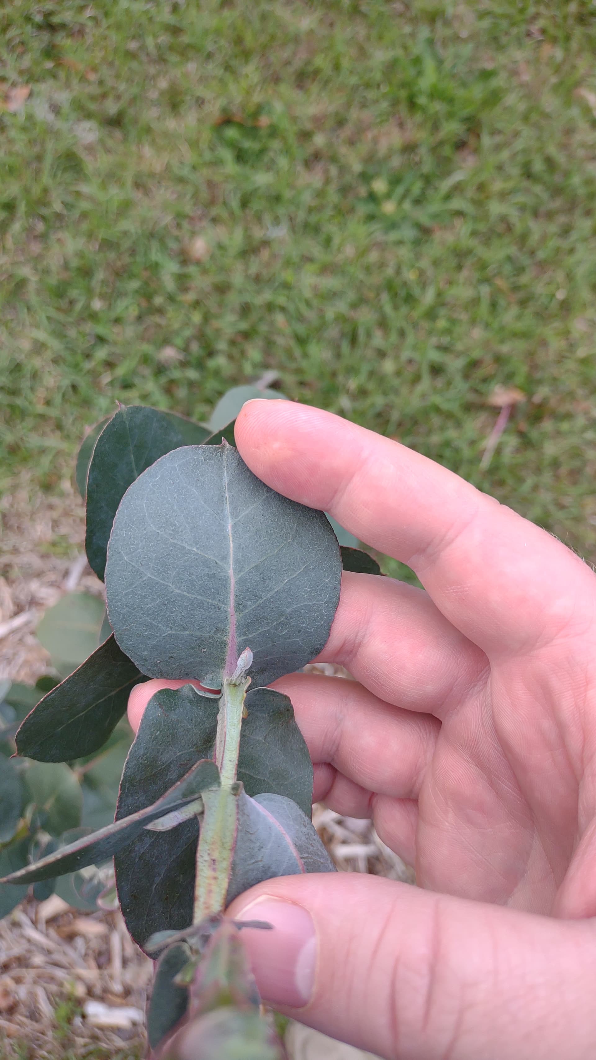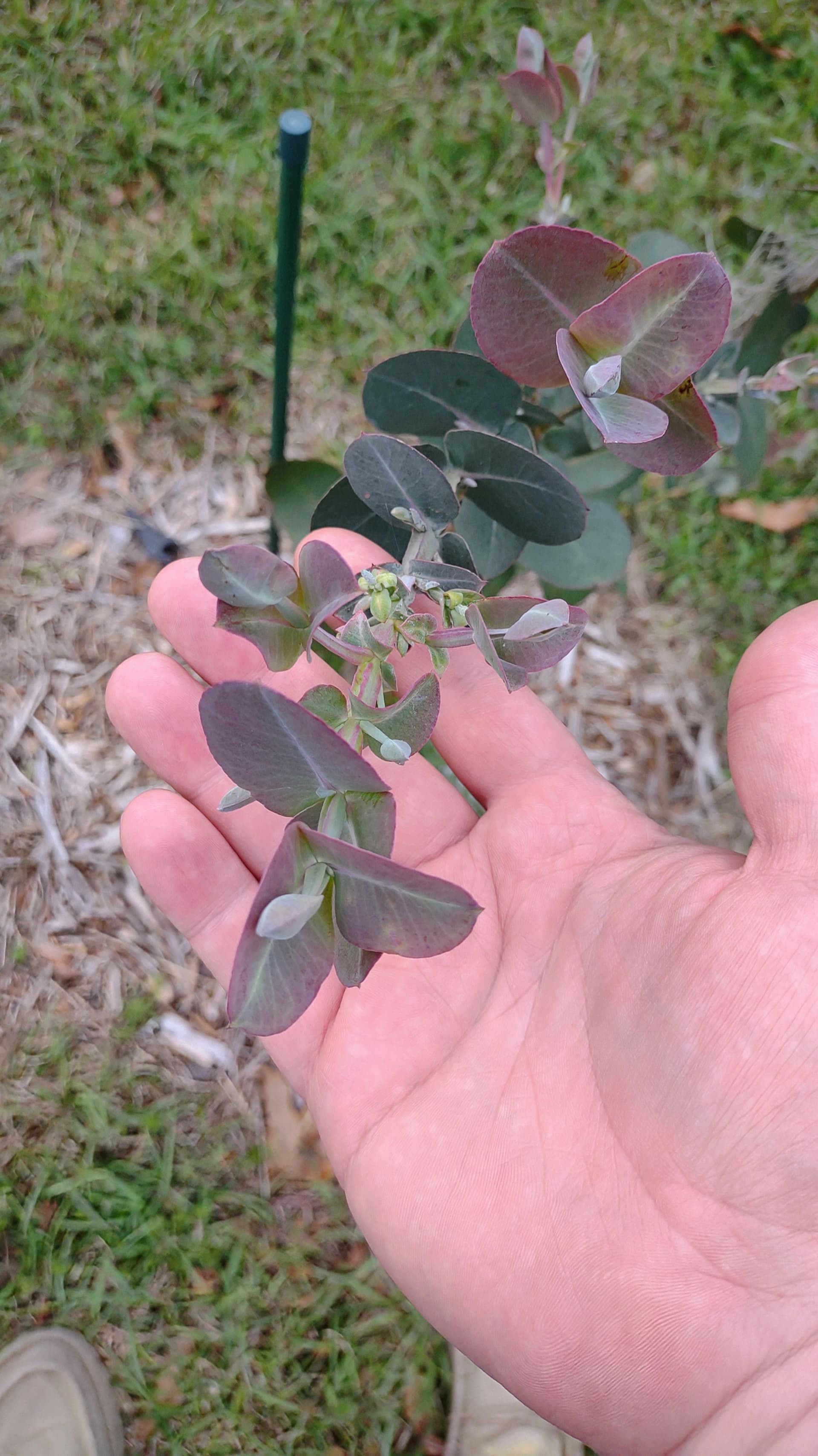 Growth rate in moist soil is greater than six feet a year, it’s a very fast growing tree. Drier soil slows growth but not by much. The leaves are broad and fairly large. Stems tend to be reddish and the outer bark a pale color. The smell is classic eucalyptus like with a heavy camphor scent as well. It’s not as bright or medicinal as stereotypical eucalyptus oil, a bit more complex. Reminds me a lot of how some dried arraignments smell.