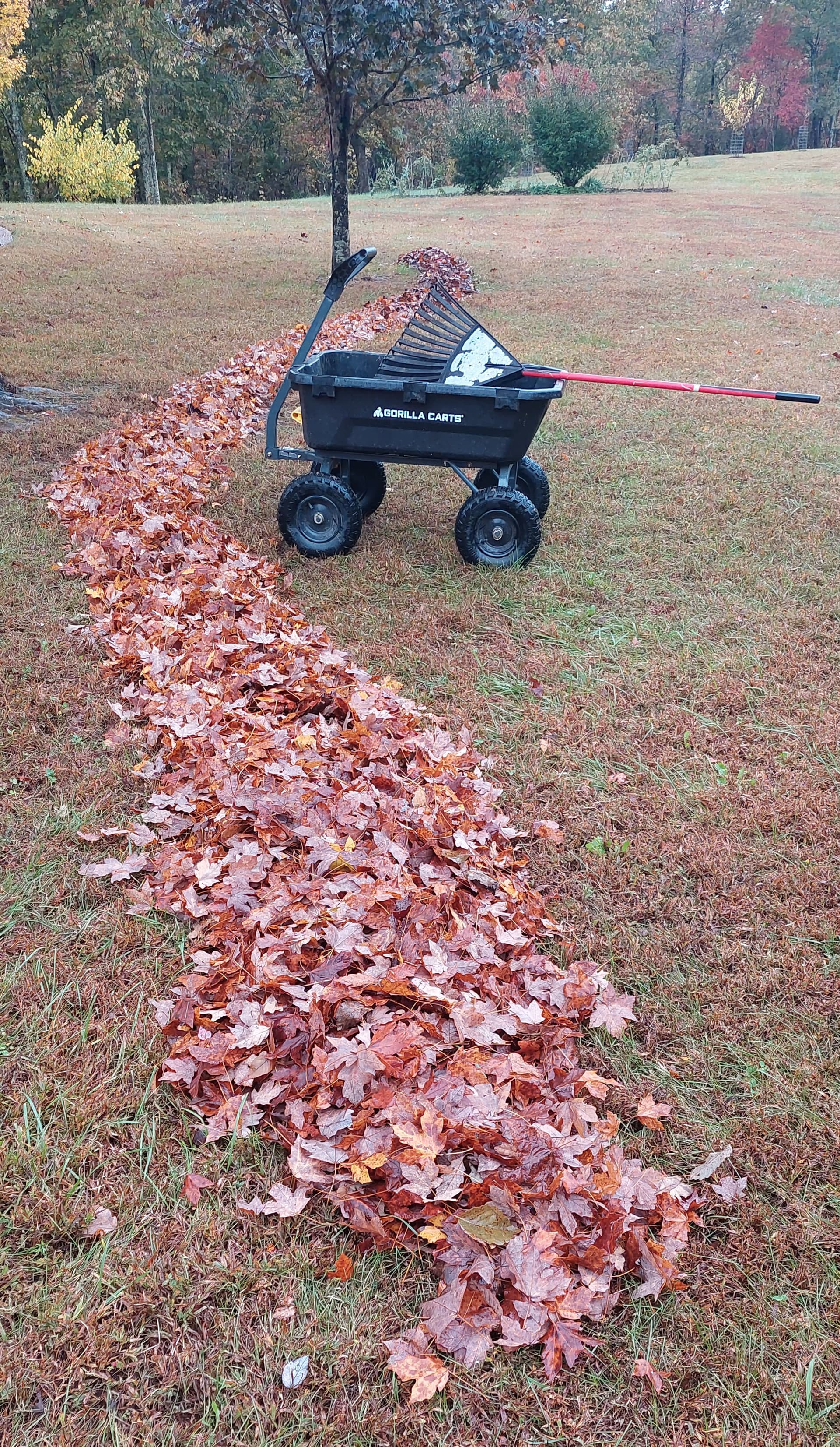 I’ve got several young bushes I want protected through the winter so many of those will have leaves raked around them. The grass in the yard is quite long, it’ll be mulched soon, and any leftover leaves from the front yard (I keep that “pretty” so the neighbors don’t flip out at me) will go into the garden beds to decompose over the winter. I don’t see the point in removing free mulch/compost then buying something else in the spring.