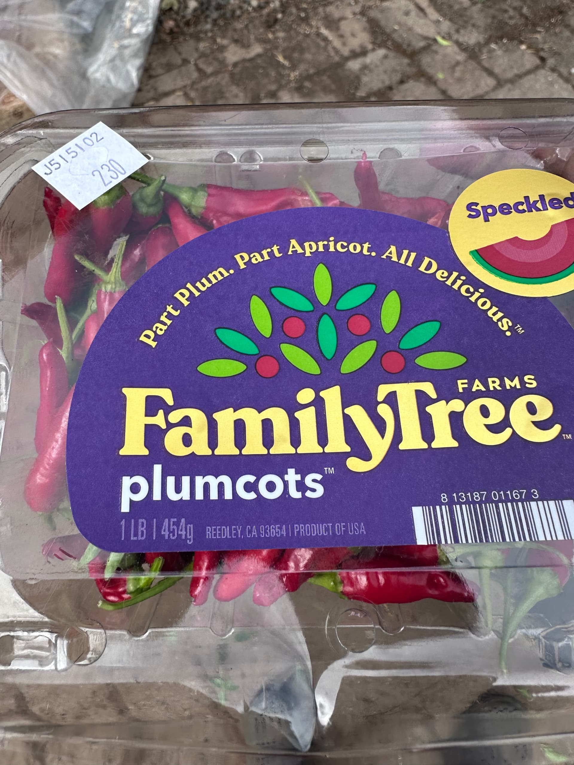This afternoon we were putting away our Santaka pepper and I used the plastic clamshell package plumcot came in, lo and behold its from Family Farms!