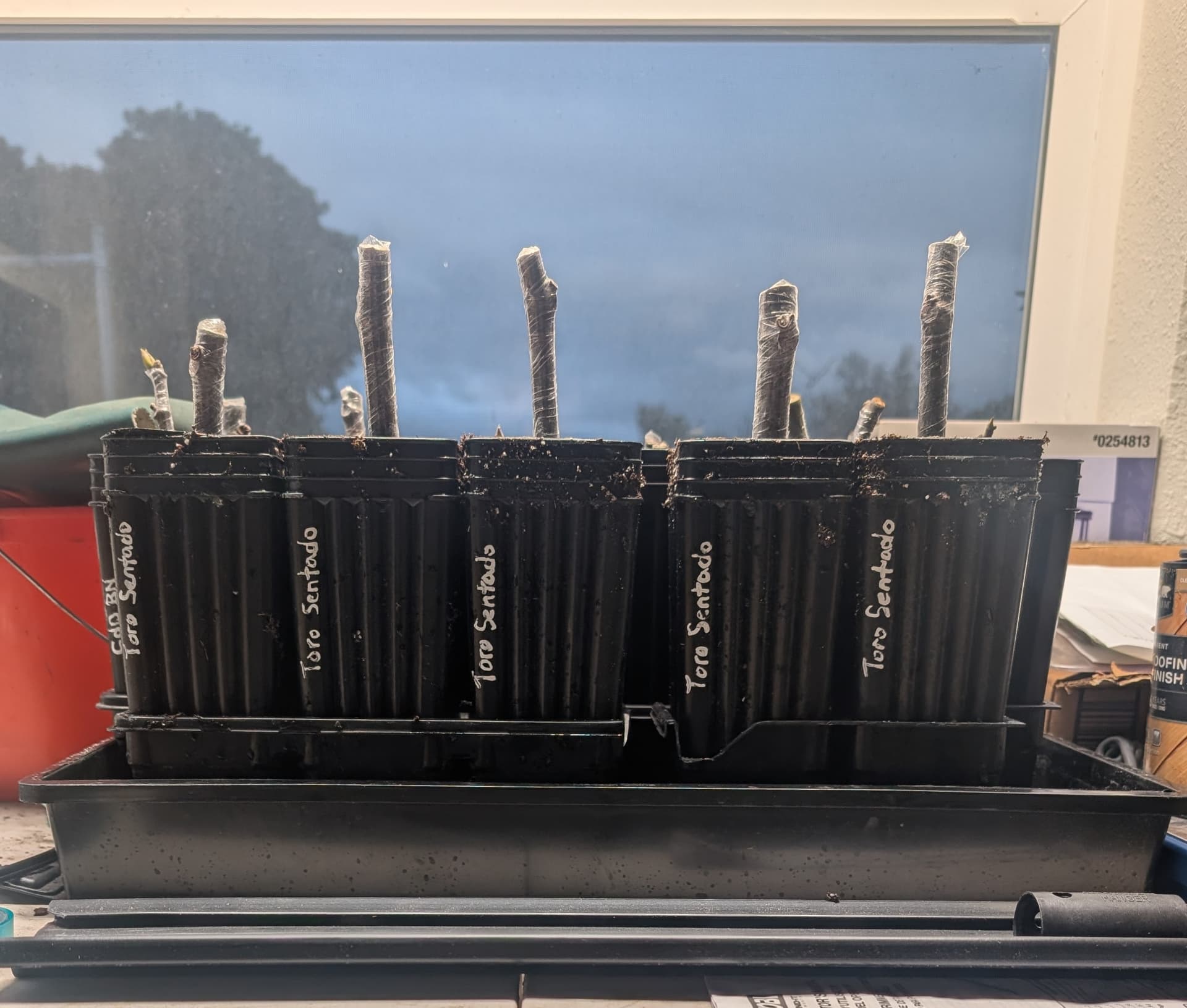 This afternoon I started rooting five Toro Sentado scions, which are claimed on OurFigs to have closed-eye syconia.