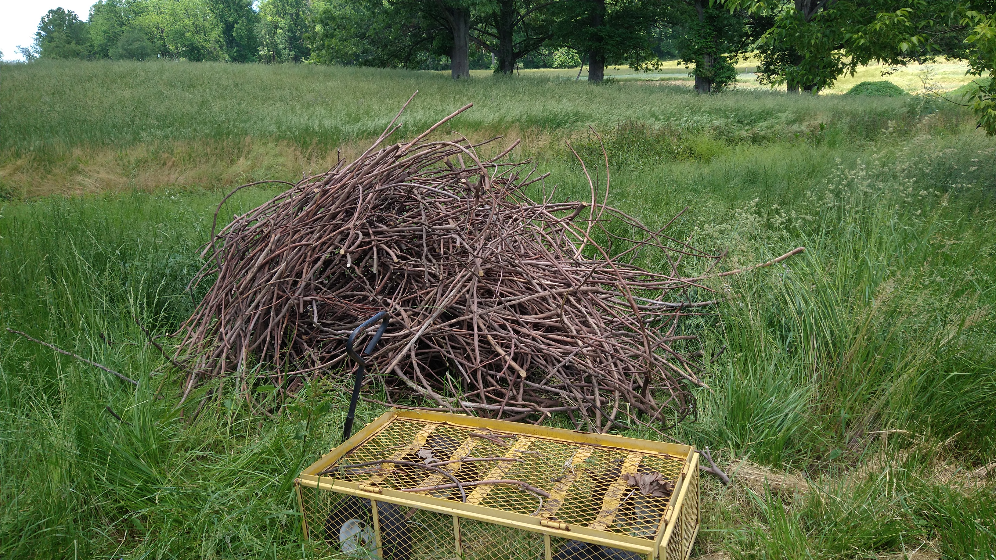 Quite a few sticks to turn into biochar, these are just the ones over a half inch, smaller is just going under the ground cover.