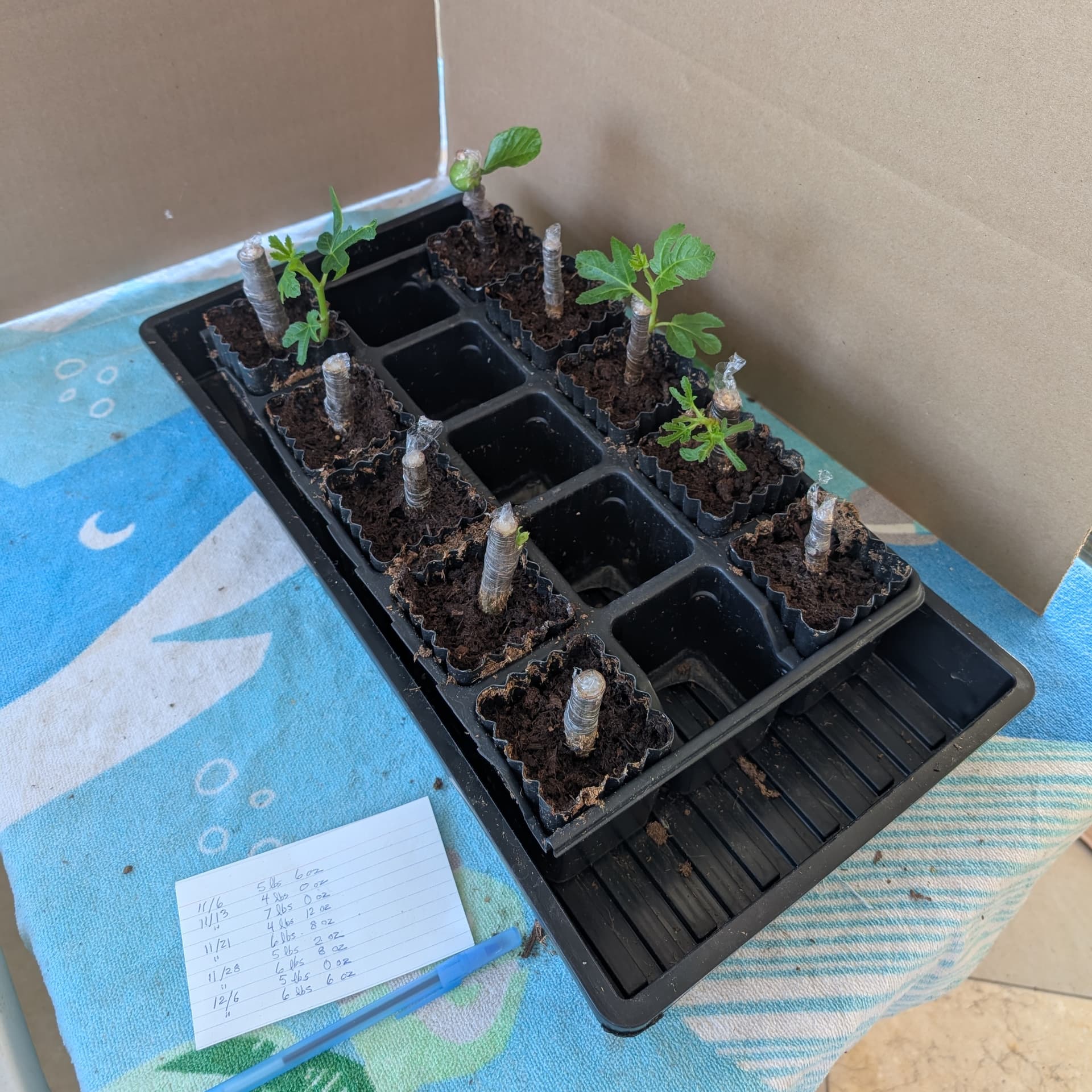 Thanks for all the advice! I think the grafting tape I got was very cheap, because even with stretching, it didn’t stick to itself. I’ve ordered parafilm, but should I only replace the top portion or unwrap the entire cutting? I worry about disturbing it too much. I did not double-wrap with the grafting tape, but did let it overlap each turn to try and lock in moisture.
