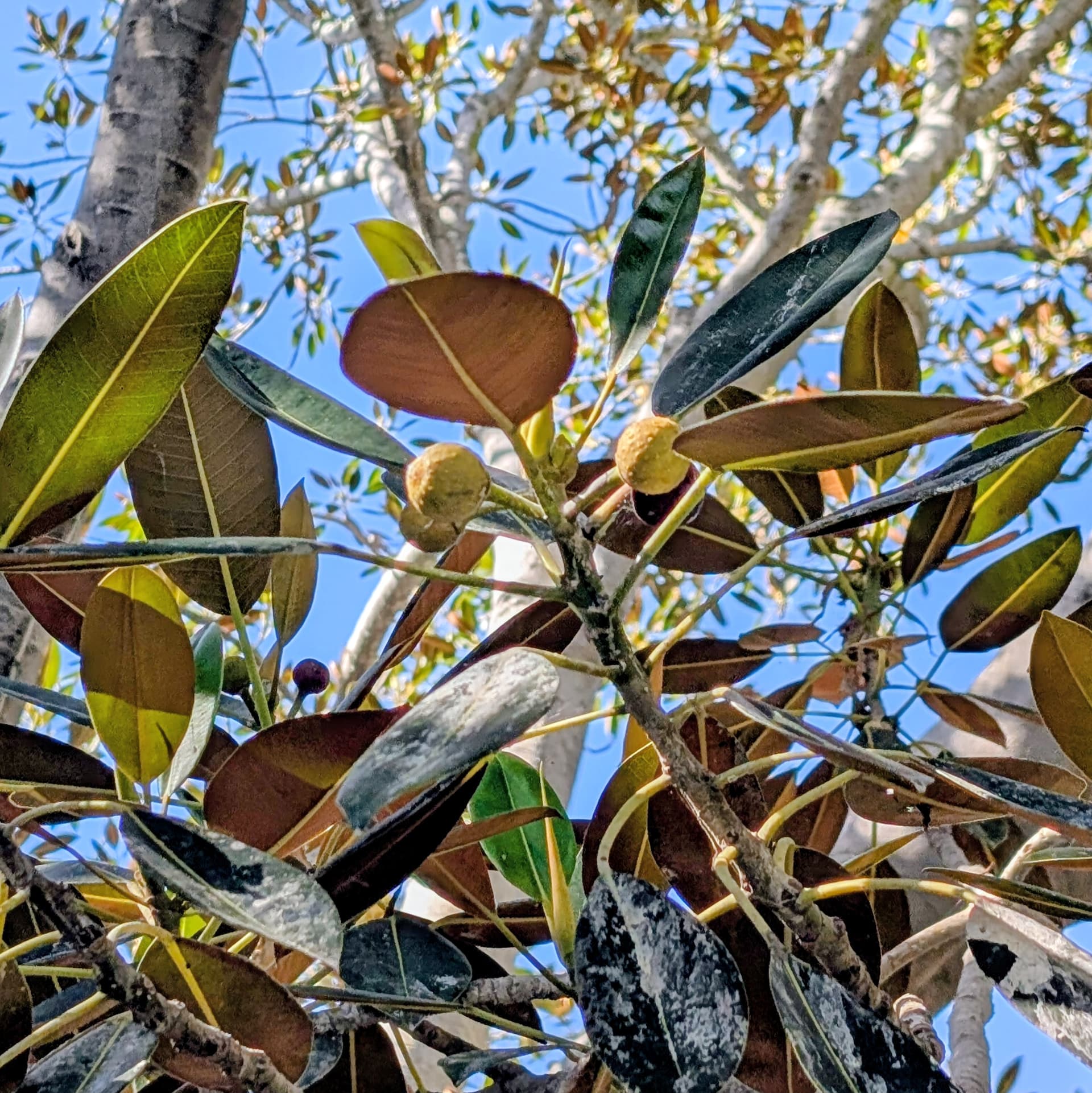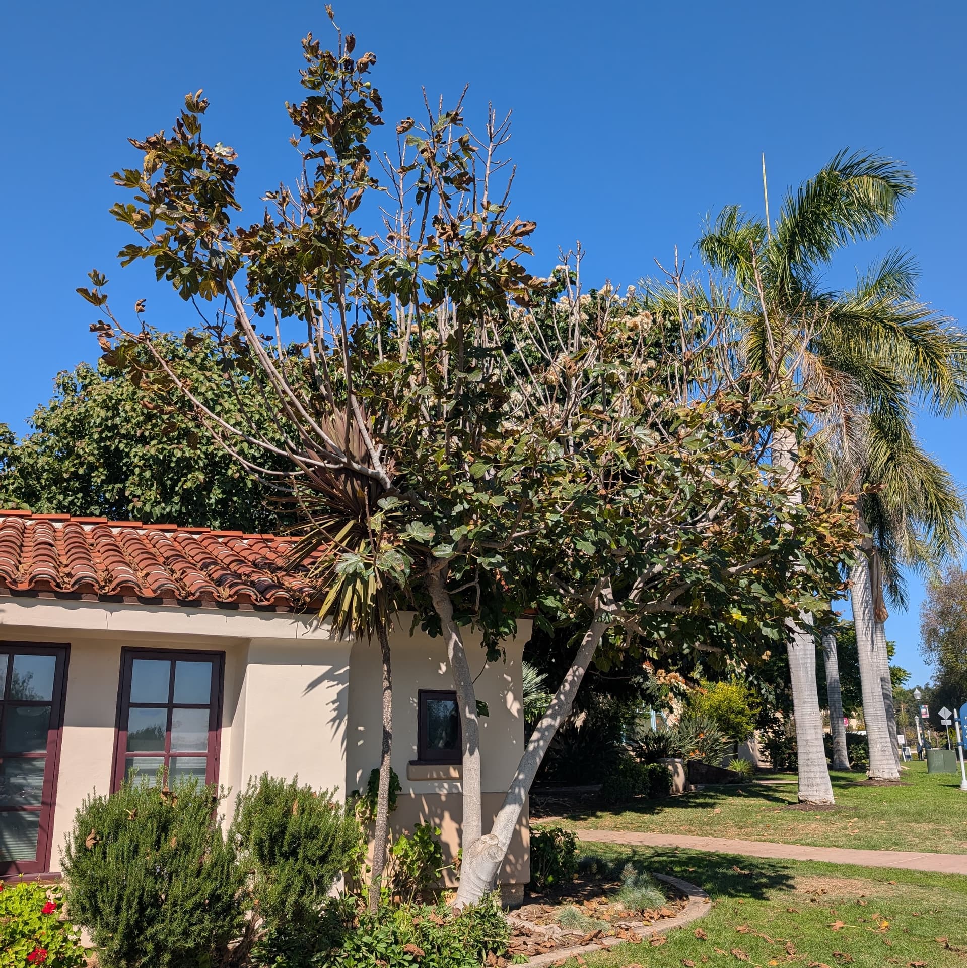 The mother tree is an unknown variety, about 30 ft tall, bears at least once each year, purple fruit that tastes berry-like I’m told and is growing by a seasonal creek bed. Supposedly the best tasting fig in the neighborhood.