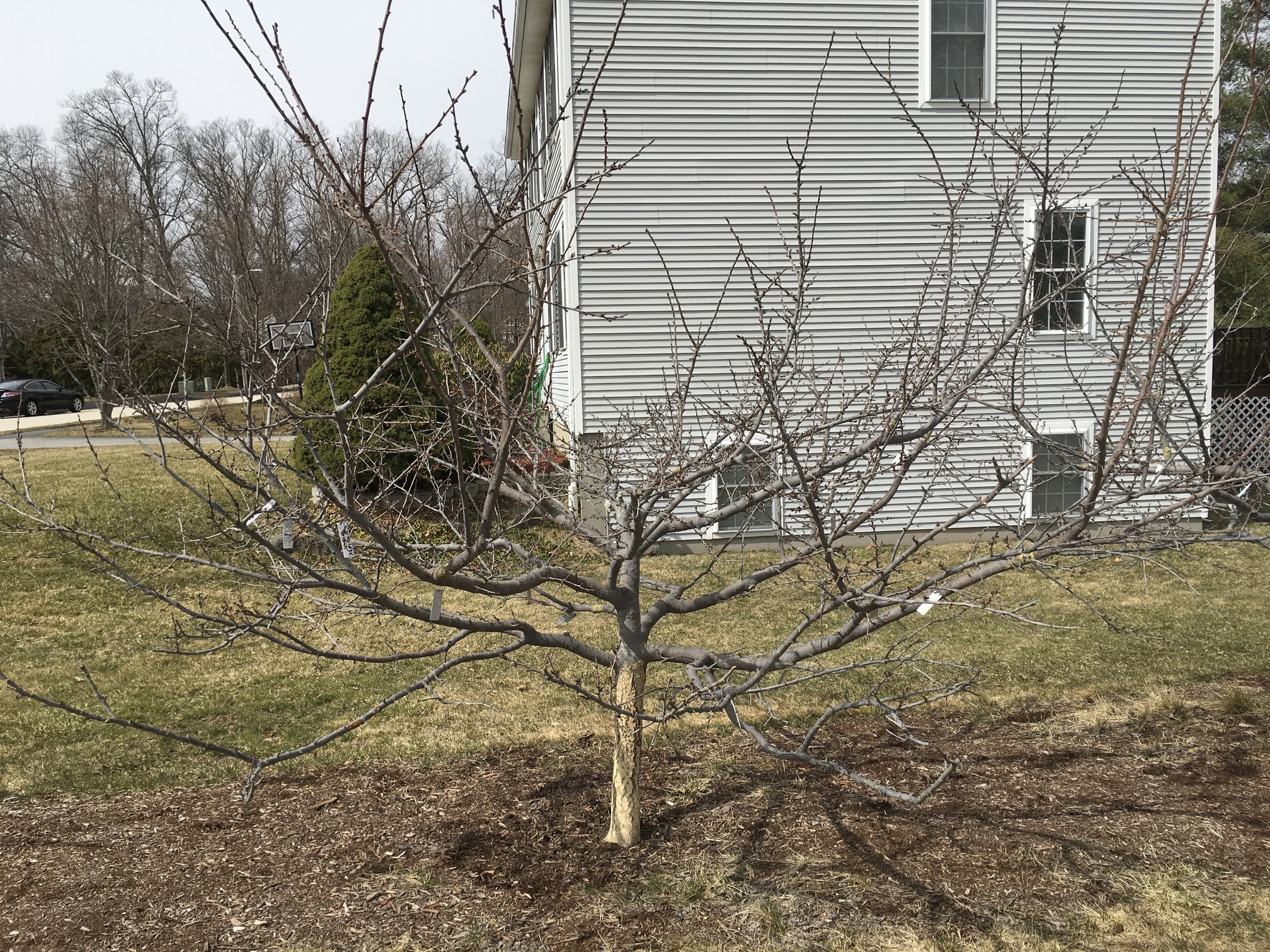 Here where the suckers came up. Right next to the tree so I headed them off.