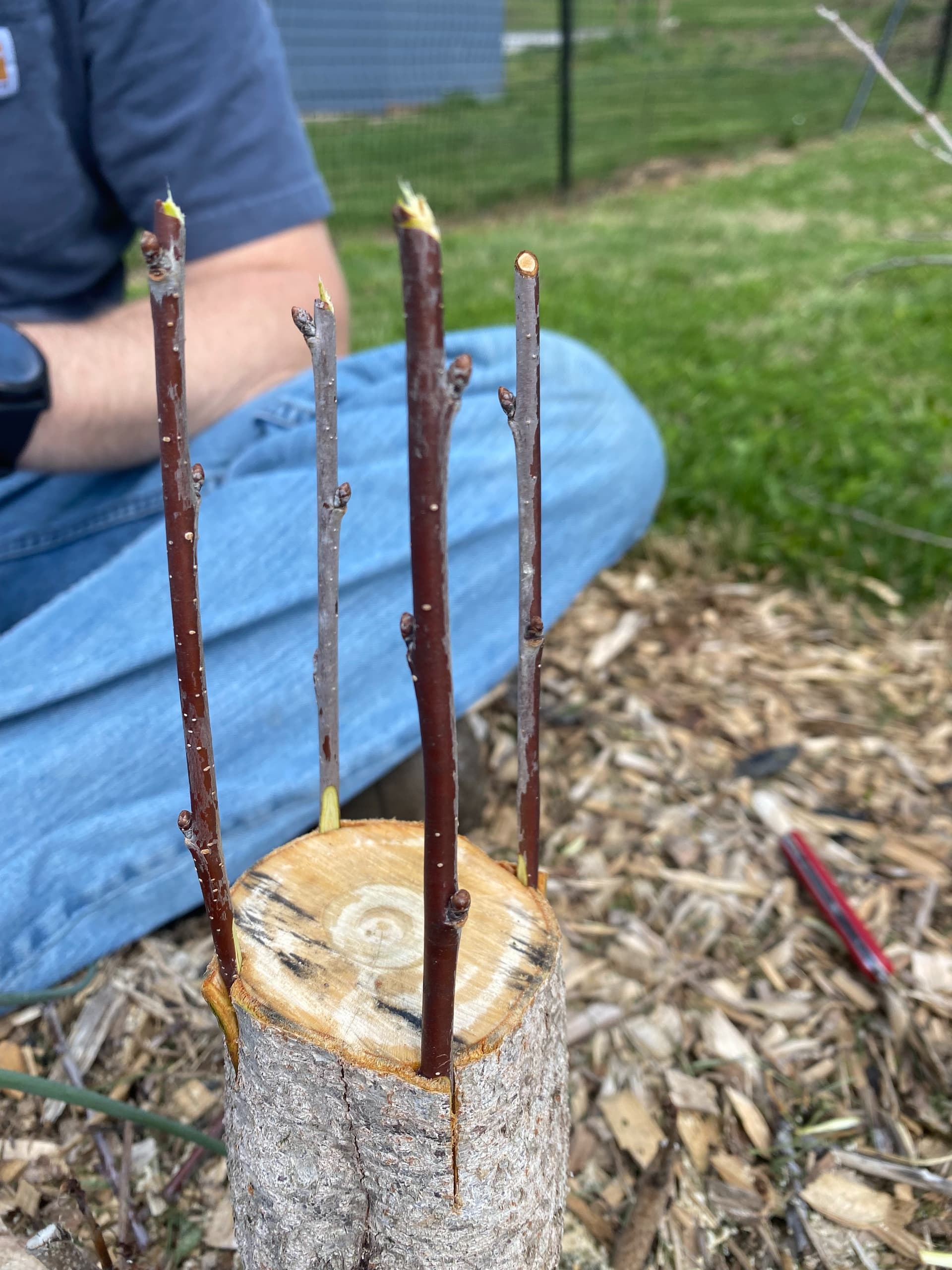 Thanks @TNHunter for the pictures and advice. This mazzard cherry root stock was very vigorous since planting as a bare root whip, so I’ll heed your advice on wind support. I hadn’t realized the impact of # of buds per scion. Would you recommend cutting them small now, or just wait and see what takes?