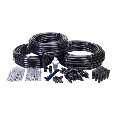 I was gifted this drip irrigation kit for Christmas this year. It’s comprised of some main line tubing and some drip line that has the emitters in it.