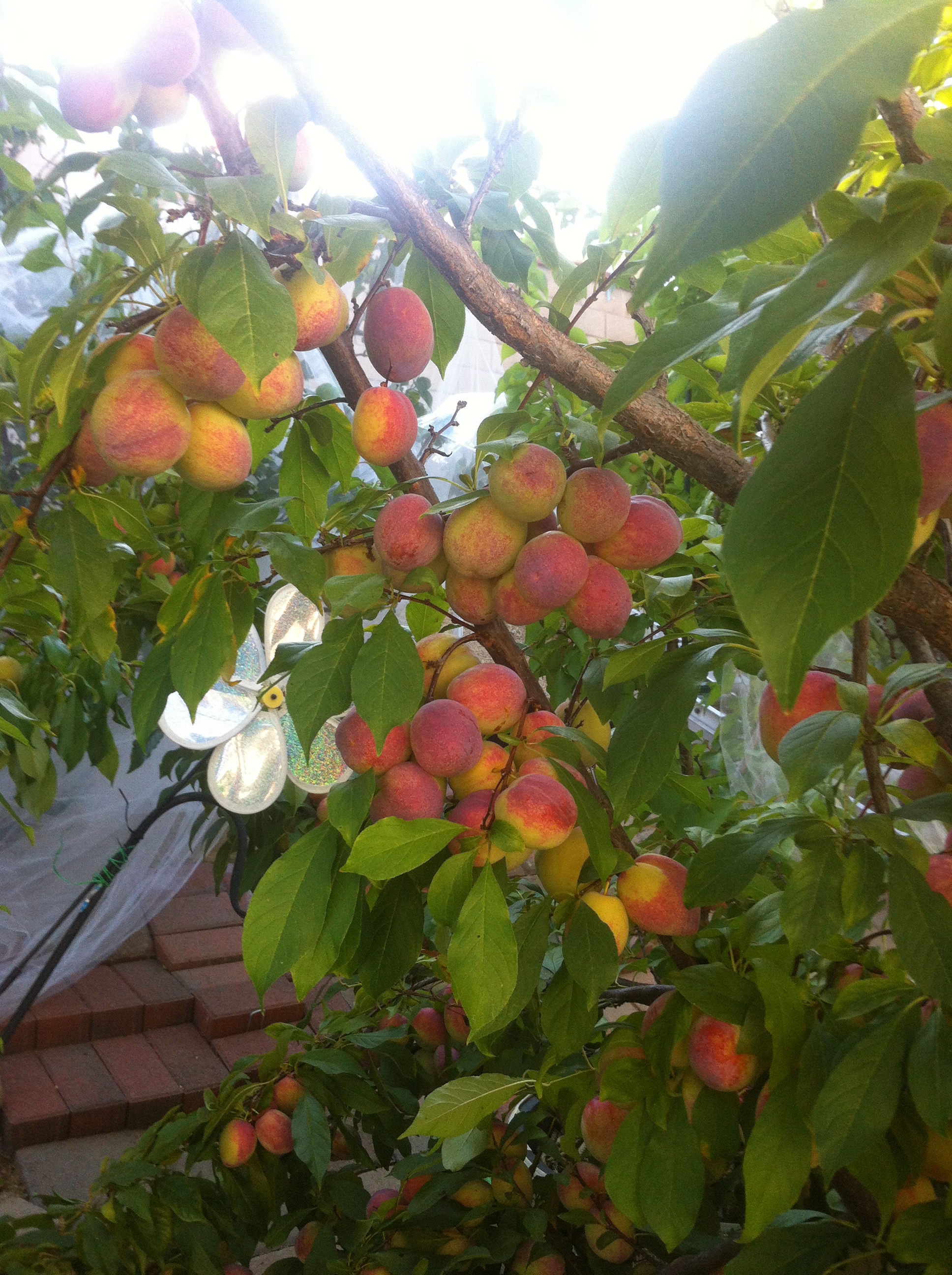 These are not ripe yet but I have to protect them from the birds. There is another tree that is more than 5 year old but only has four fruits. I have no idea how they turn out so differently.