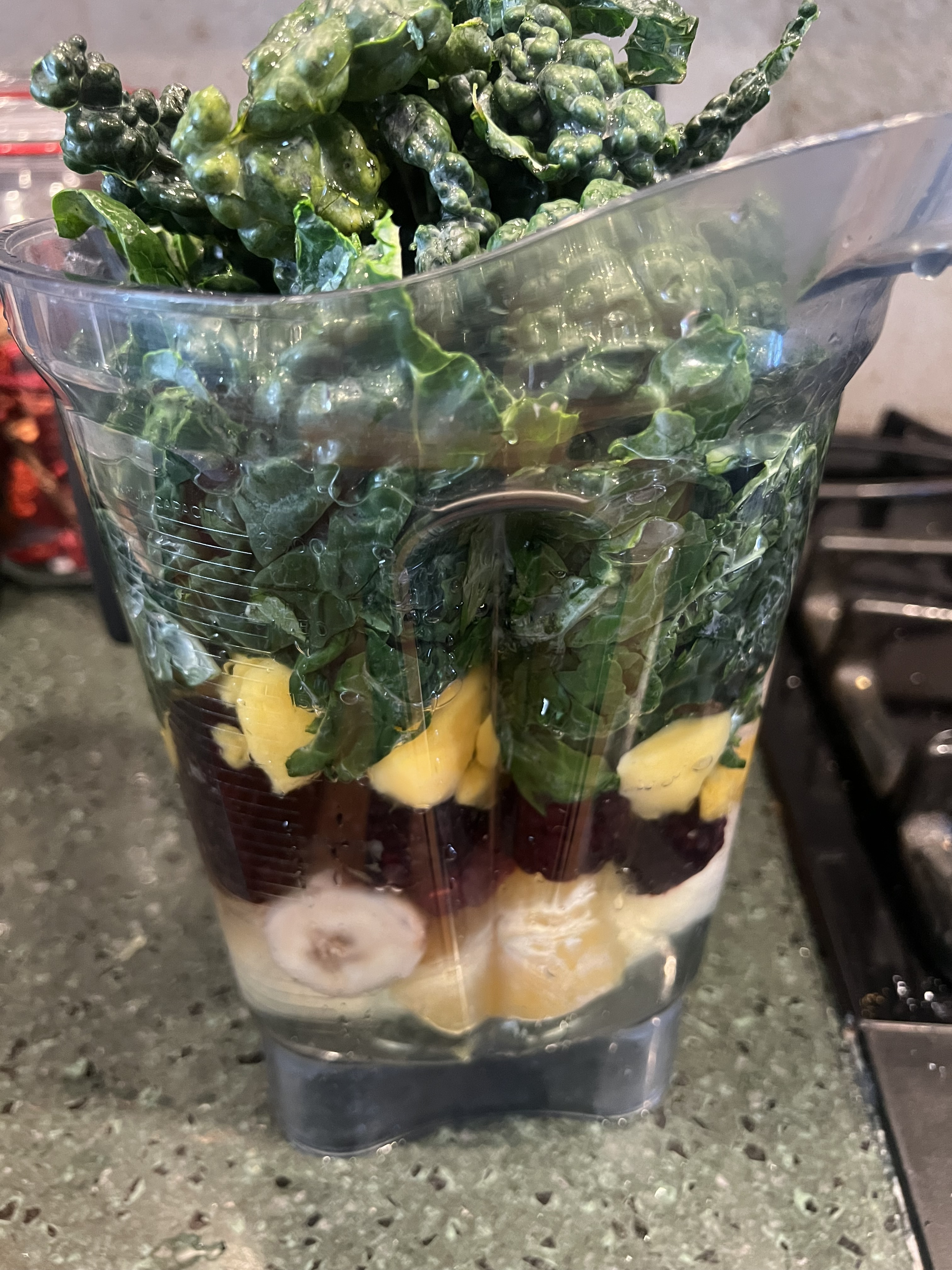 I almost always include ginger and turmeric in my green smoothies. I use the ginger for both health benefits and taste and the turmeric is really mostly health benefits since I don’t think it is as obvious in taste with everything else in the mix. I make one every few weeks, keep it in quart jars in the fridge and we drink it over 3ish days. I used to actually have a green smoothie of some type almost every day, but I’ve gotten lazy.