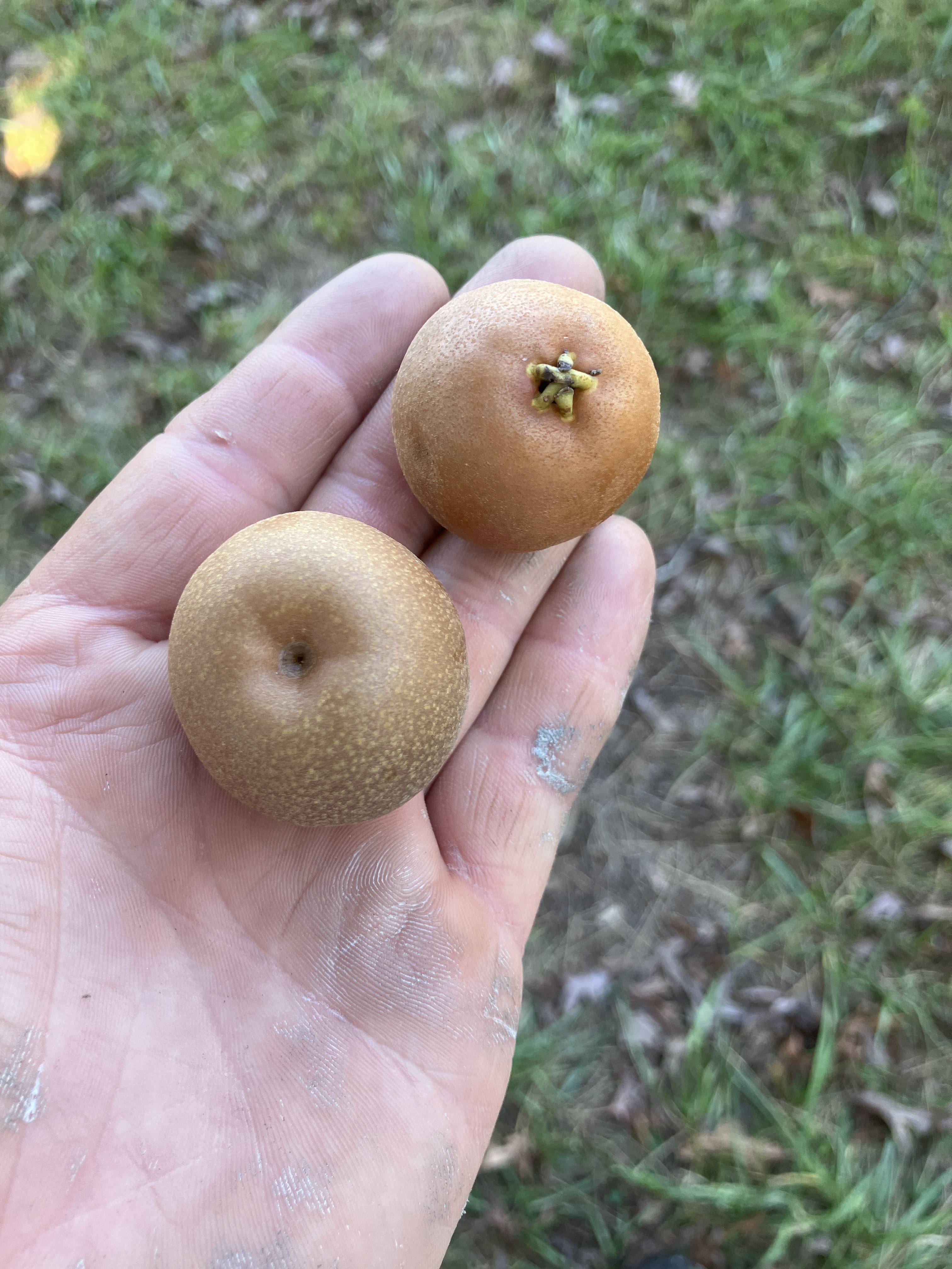 For context, I’ve always enjoyed gardening. I haven’t always been an intelligent gardener or had good internet access to research things. When I was a kid I developed a tactic of digging up and transplanting anything interesting. Anything I didn’t have a good spot for, I’d pot and sink the pot to the rim to cool and conserve moisture. This way, I could plant it elsewhere later. During these childhood years, I dug several “apple” seedlings. Some of these ended up forgotten when I moved out. 3 of them have survived and developed into fruiting age pear trees. I’m sure at one time I knew where each one came from. I remember digging at least one up from under a neighbor’s apple tree because mom loved his apples. I didn’t have sense enough to know #1 as a seedling it wouldn’t be the same apple variety and likely wouldn’t be true to type and #2 this would be at least partially due to the fact that it was a pear seedling that just happened to sprout under an apple tree.