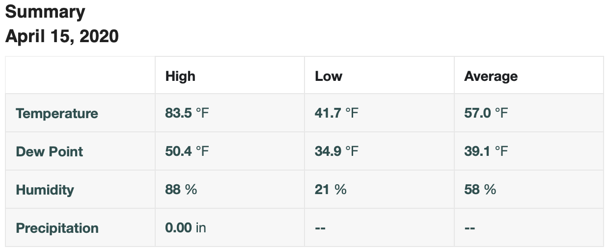 It’s in the mid 40s, and sunny now. Just got back in, took the tarps off the strawbs, didn’t really look at them, too early to tell.