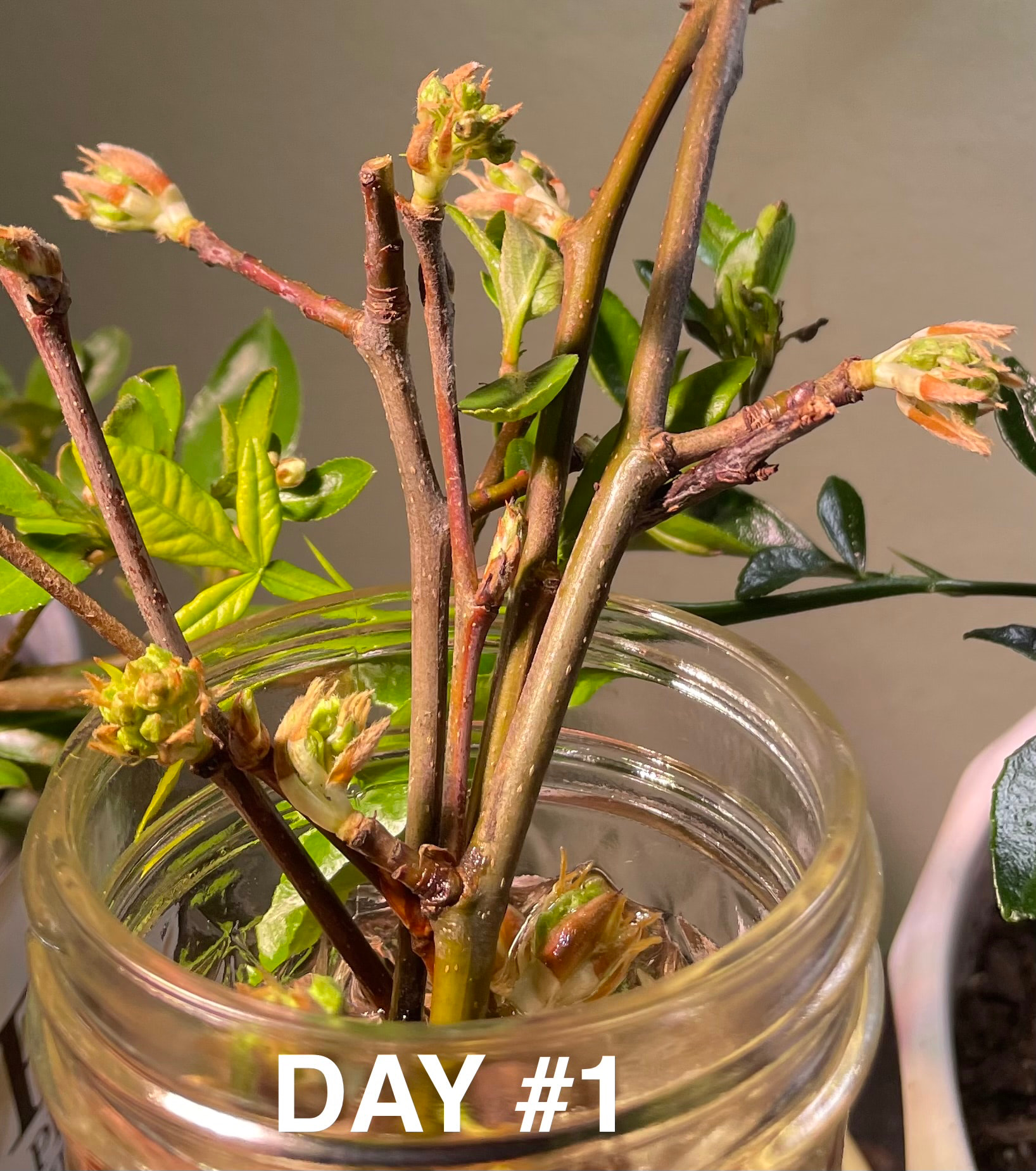Credit goes to my friend and neighbor, who brings flowering quince branches inside for Lunar New Year to create good luck. I started doing the same and noticed they produced pollen.