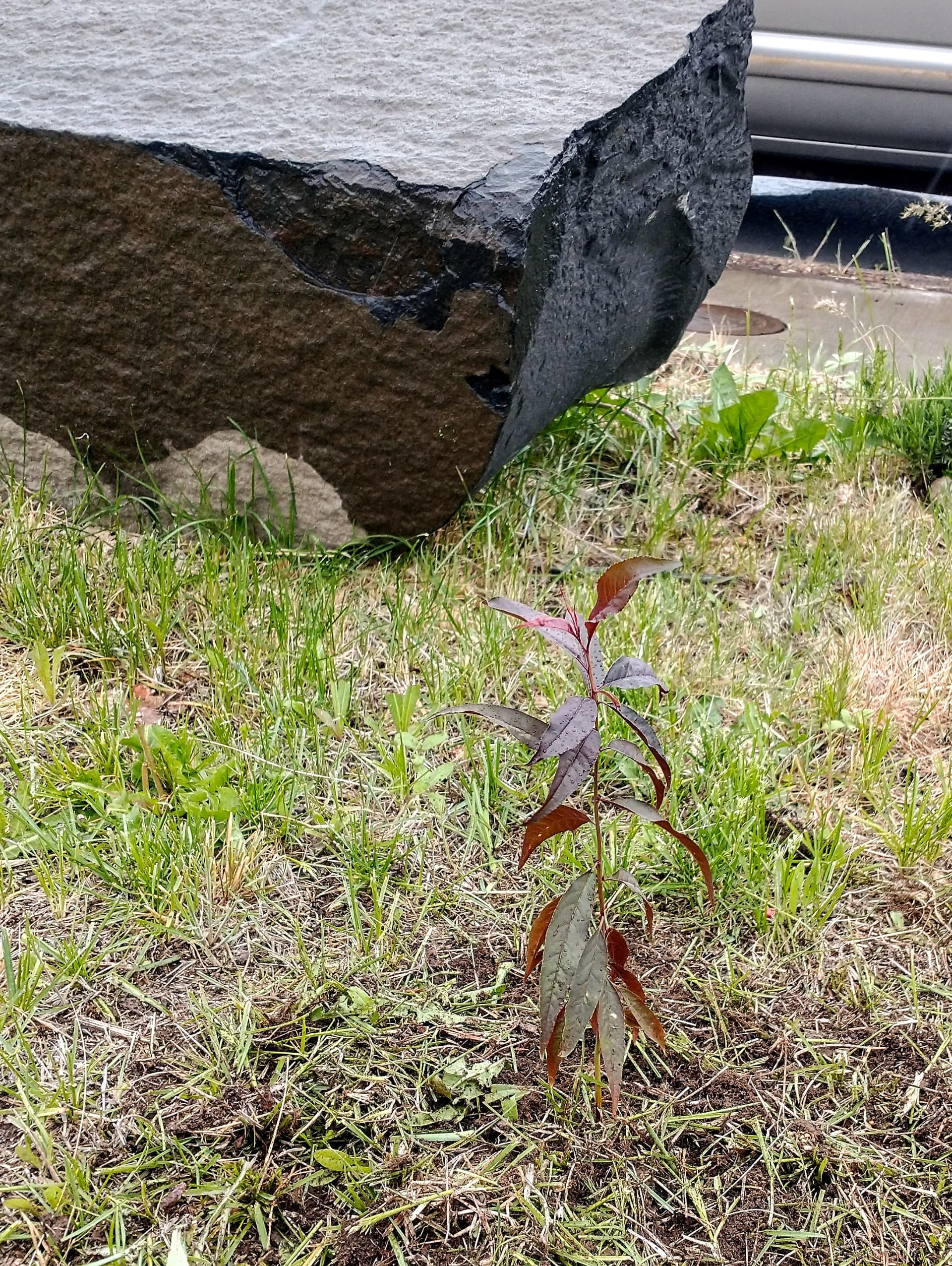 I planted my seedlings today. 3 nectaplum and an apple in the back yard. 3 pluots, an apple, and this lovely red nectaplum in the front yard. I fenced the ones in the back because of dogs, but the ones in the front should be ok.