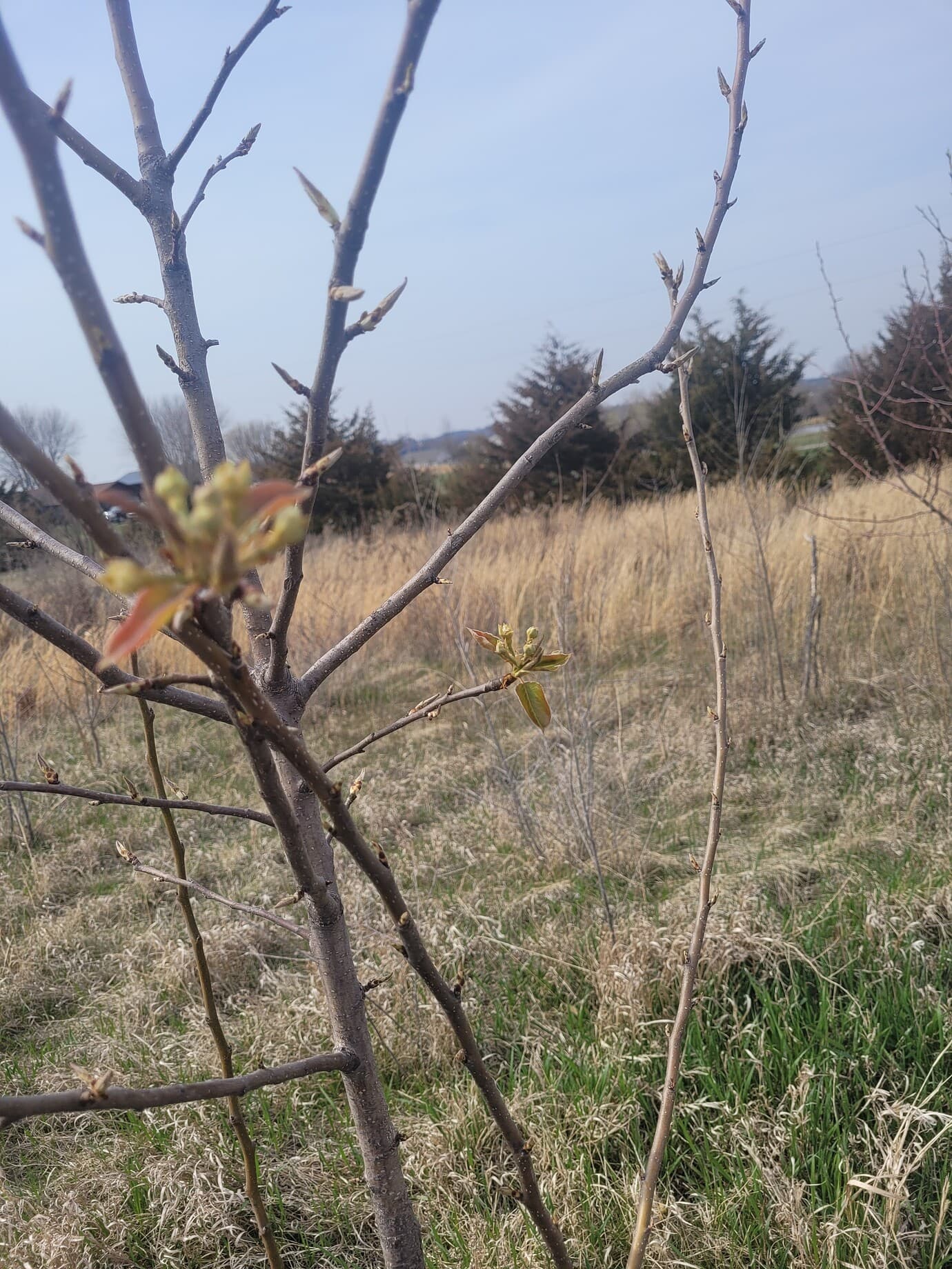 New growth.–Size – Medium. Texture – Smooth. Color – Medium green with brown overcast (23-J-7). Lenticels – Number – Scattered. Size – Small. Color – Tan (6-A-8).