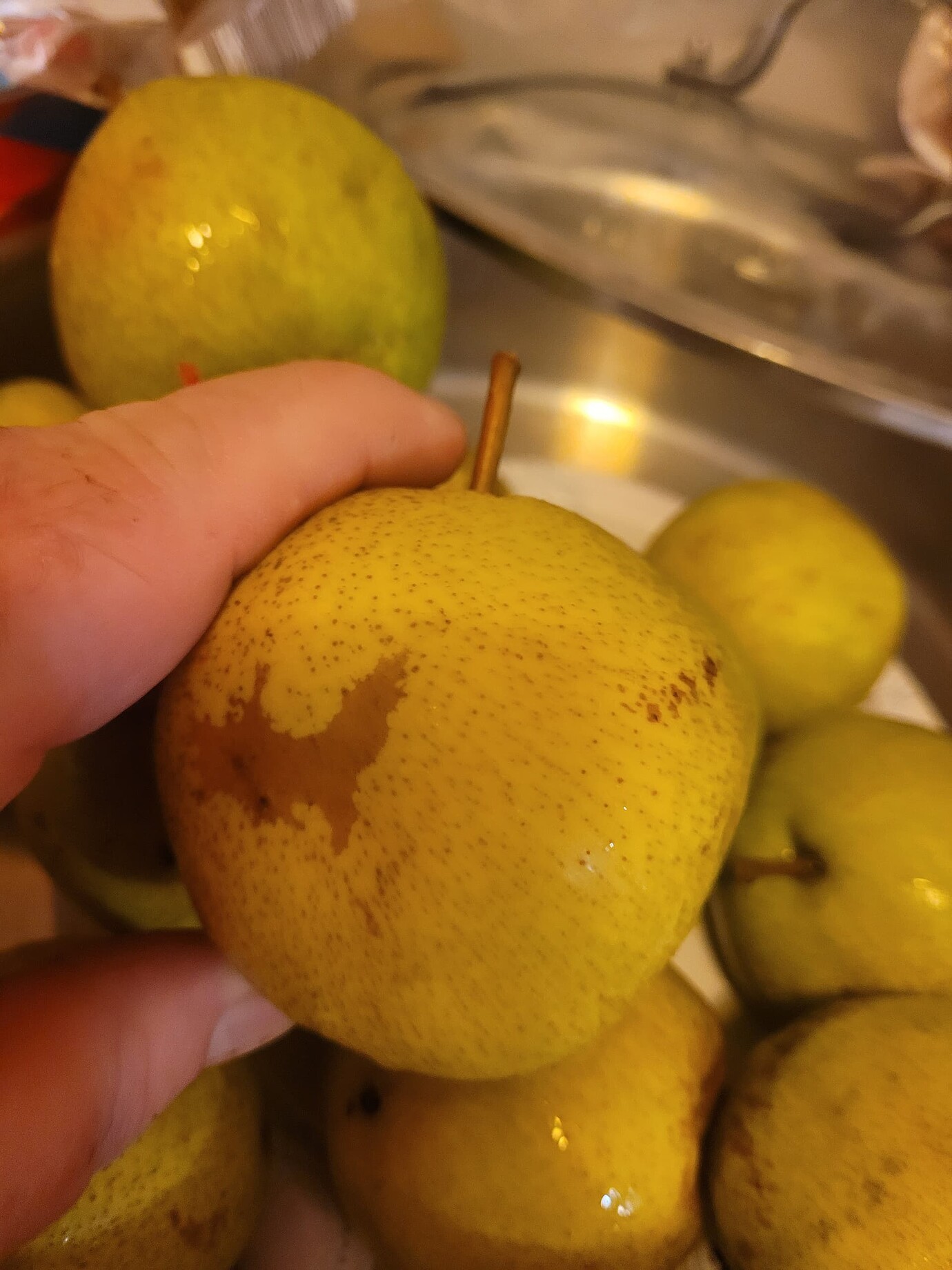 According to Mrs. Turnbull, the ripe pears can be canned, eaten fresh, made into sauces, and the like, while the green pears can be used “just like apples” in pies, cobblers, Waldorf salad, and other apple recipes."