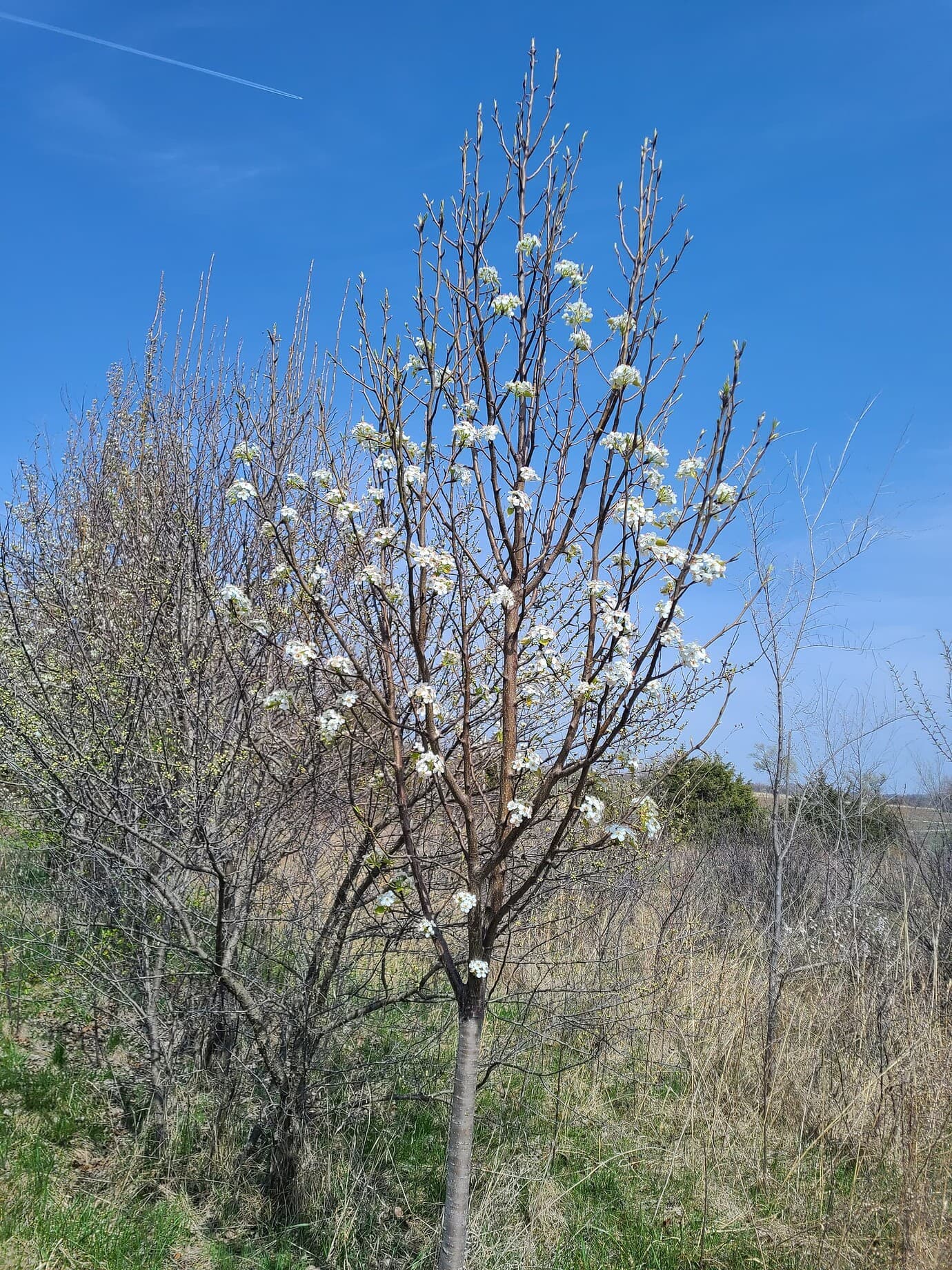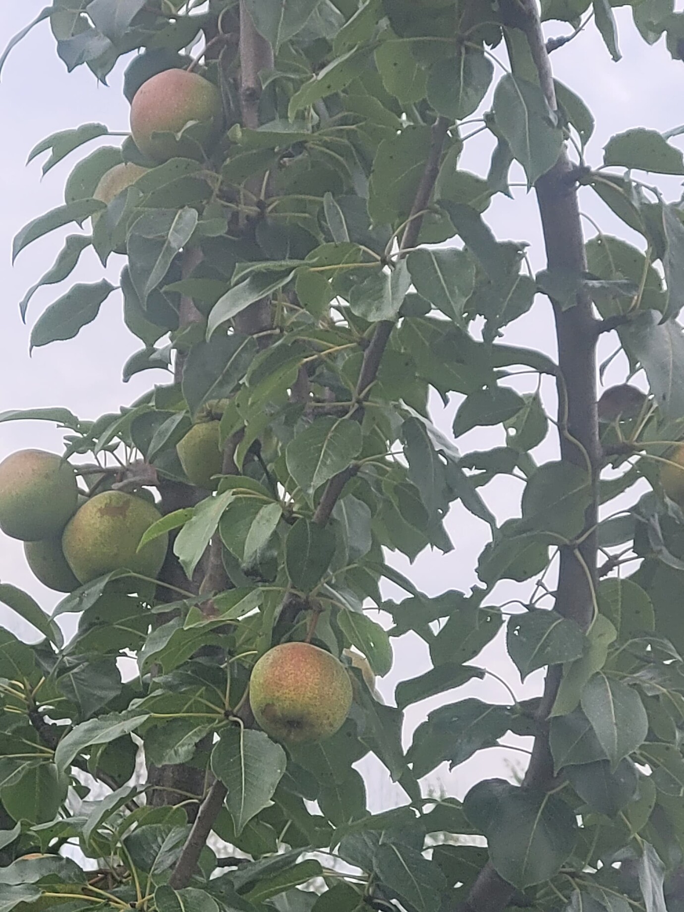 Midway through the season pears can be harvested when they are just as sweet, juicy, and crisp as any apple; at season’s end they are very sweet and soft in the conventional pear manner. In addition, the tree has a rather unique way of getting around the problem of late-season frosts.