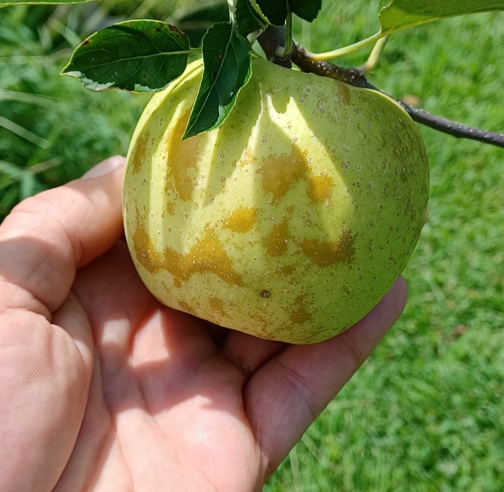 Also I battled cedar apple rust on this tree last year and got 5 ripe delicious apples with no russeting. So I already know they are tastey apples. The golden patches on the skin confused me.