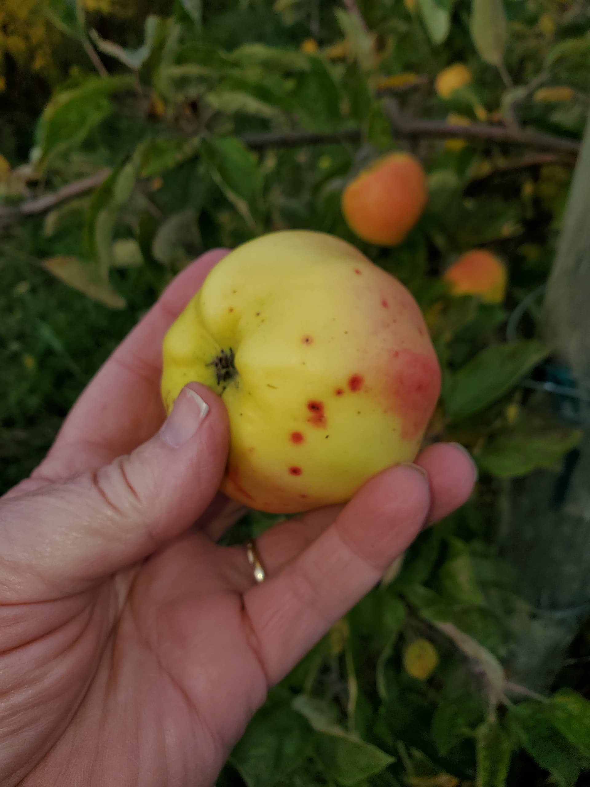 These have ripened further along than most years. All (small number this year as this is on off year for Gold Rush) turned mostly yellow with little green to them.