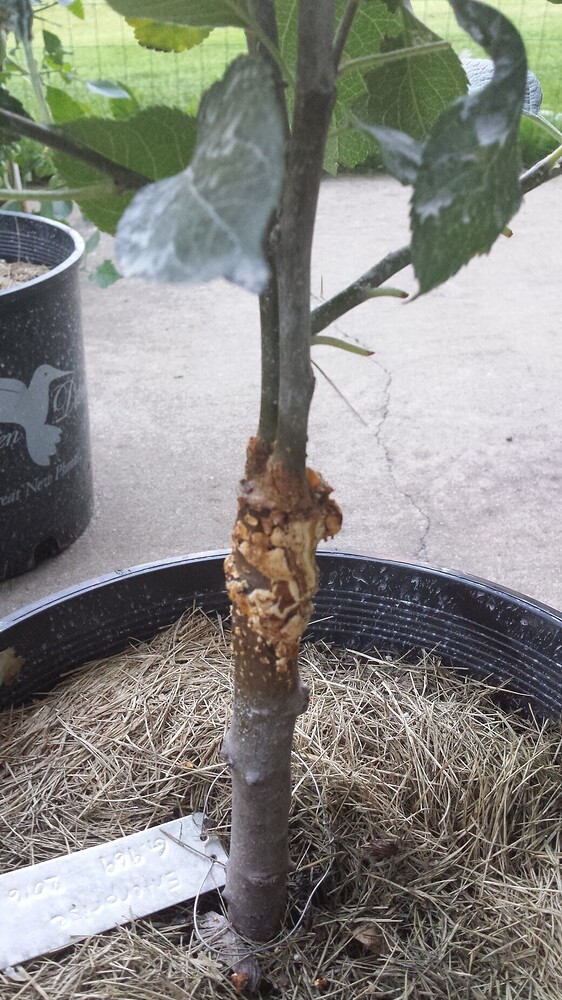 @matrix calls this “cancer”, it looks kind of nasty, but did not affect the tree negatively in my case. We had a discussion about how isolation of the graft site induces undifferentiated (?) tissue proliferation on apples and pears.