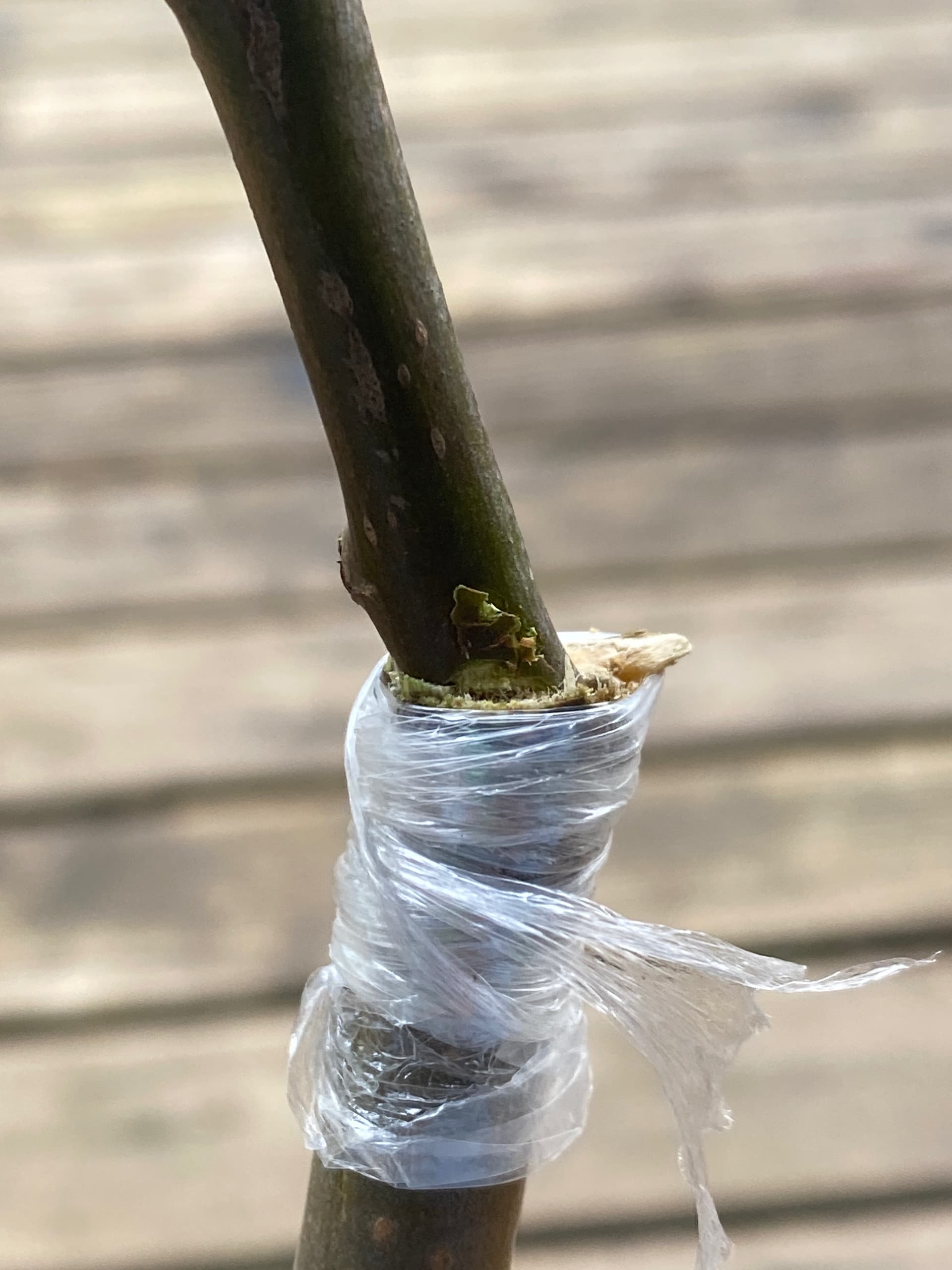 This was a quick sticks found on the ground for an example with minimal effort. I do t even know what kind, the one I showed. But if I tried to match the diameter the scion would be 60 feet in the air for a typical shooting off water spout. The idea I had (and not tried) was specifically for apple water spouts. Cut it off close to the tree and tap into that vigor. Clinching it down is the easy part.