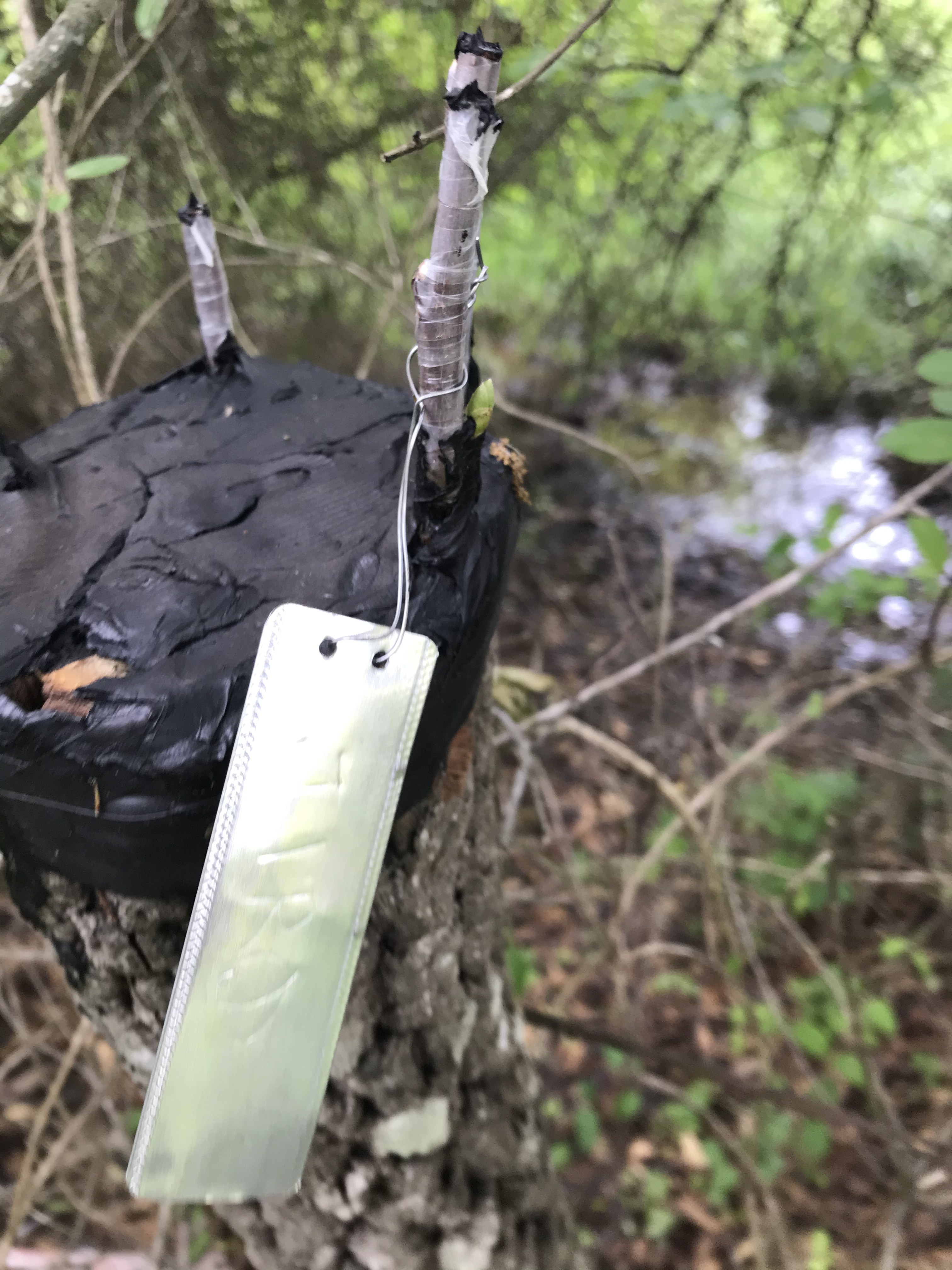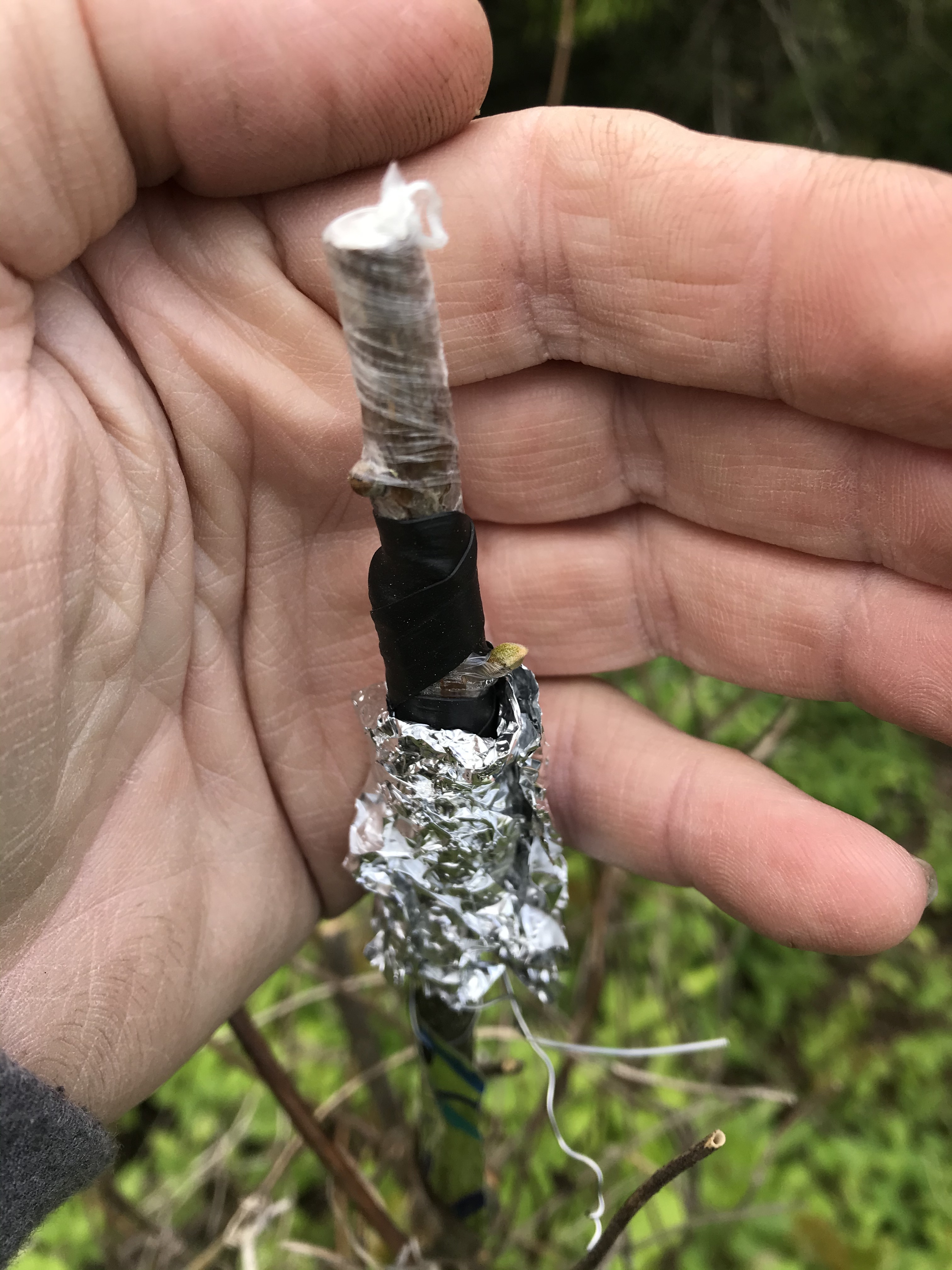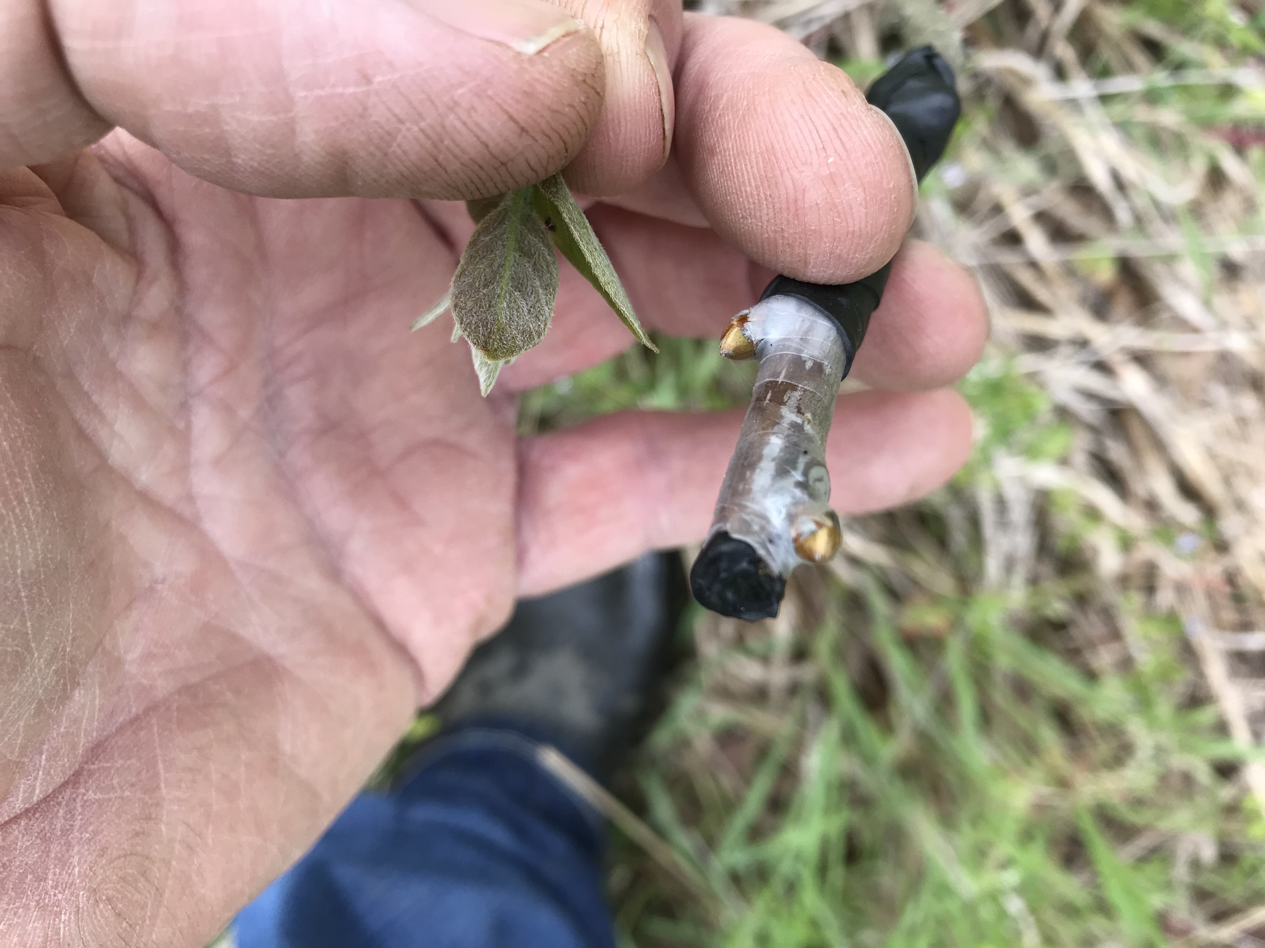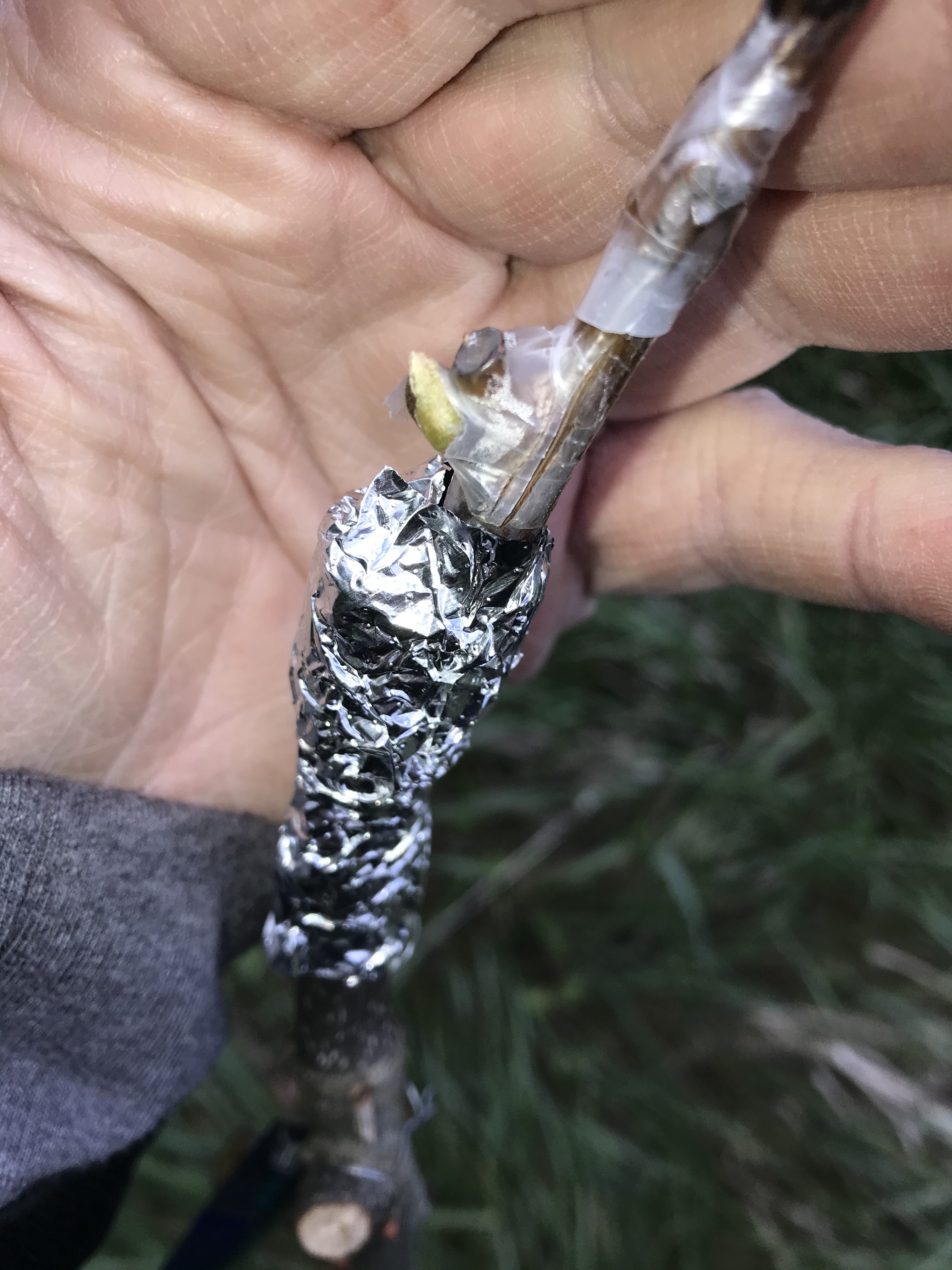 I vaguely recalled someone mentioning making some bleeder cuts, so I did that upstream of the grafts. On one, I wrapped it tight with parafilm. The other, I didn’t wrap at all, other than the rubber band over the graft union.