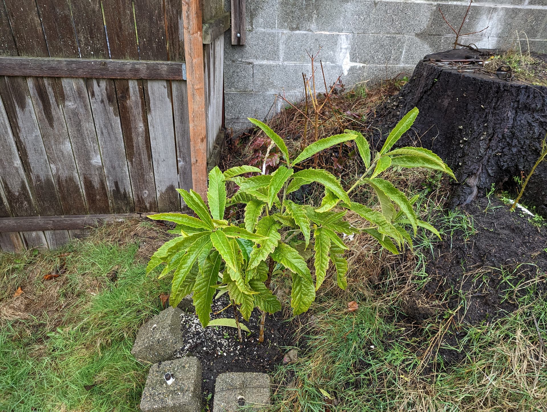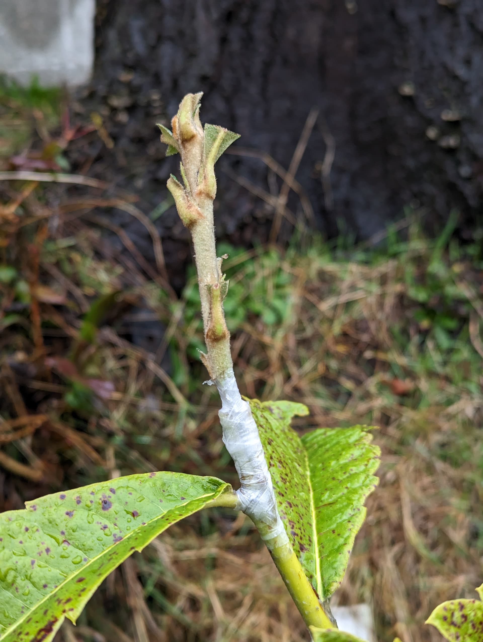 The tree thatâs grafted on is the only loquat seedling thatâs still basically dormant. Hereâs the other branch that I didnât graft:
