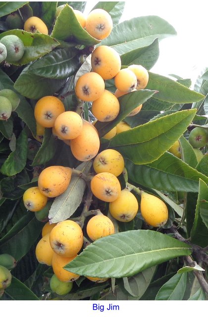 Also have a Kanko grafts from Adam that has fruits on my trees. The loquat that is ripe now on my tree is the Big Jim, the others are still just starting to turn yellow or are still green.