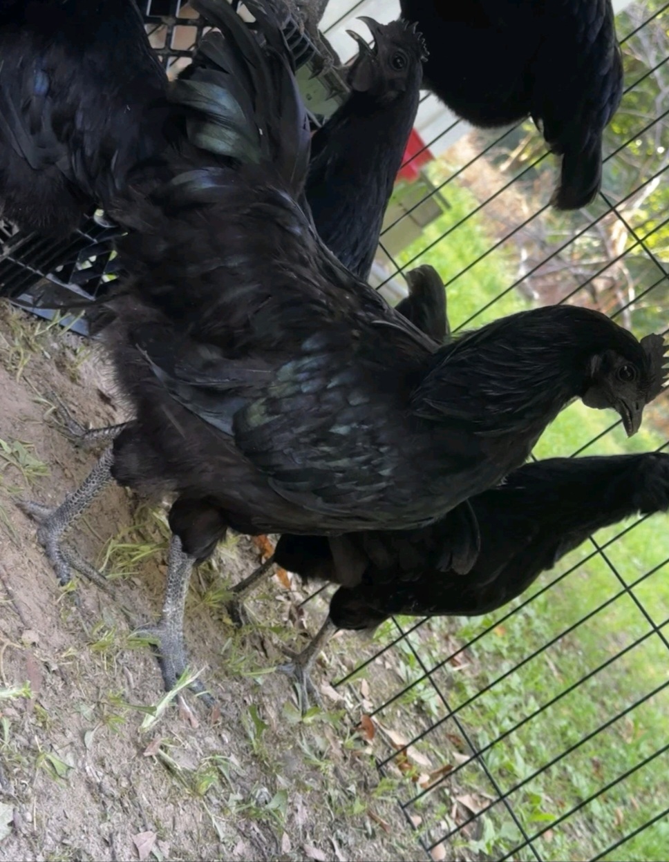 The grasshoppers this year will have predators they can’t anticipate having. They will also be used to clean up falling mulberries, old garden wates etc. . My chickens have always been free range. These are Ayem Cemani. I borrowed @39thparallel Incubator.