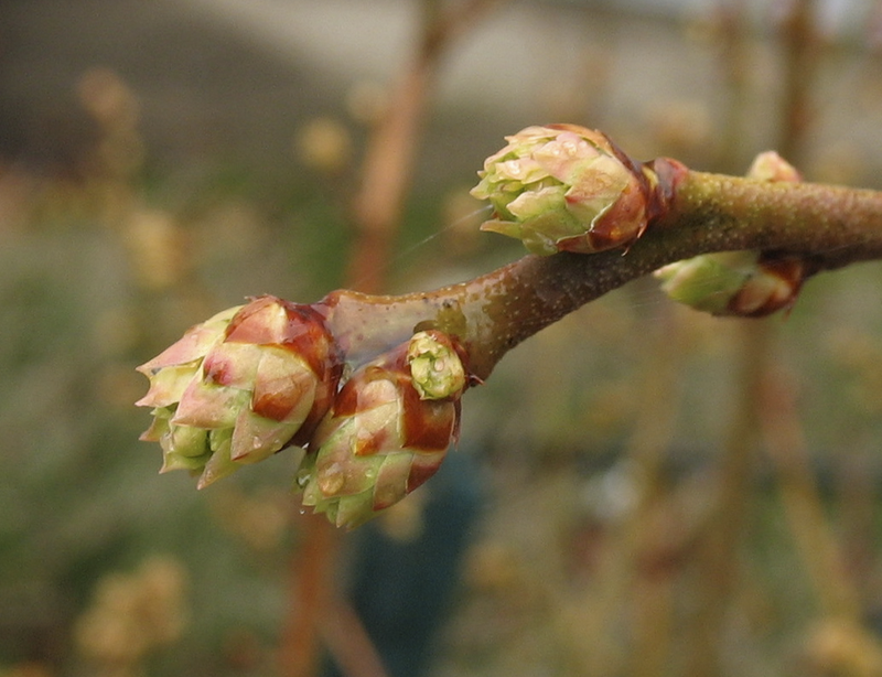 Naw, it’s a photo I took of some fruiting blueberry buds that were swelling and opening in the spring. I think it’s on one of the half-high hybrids, probably Northblue.