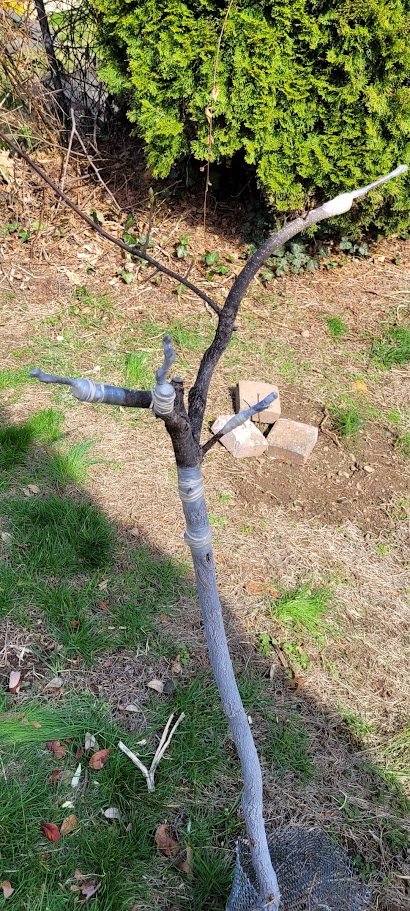 What graft did you decide on? If youâre going to chop the tree down for bark grafts, you will have to support the grafts since they will shoot up with vigour and the wind will rip them off. If it were my tree I would graft it lower, itâs already too tall in my opinion to reach the fruit but that is your preference ![]()
