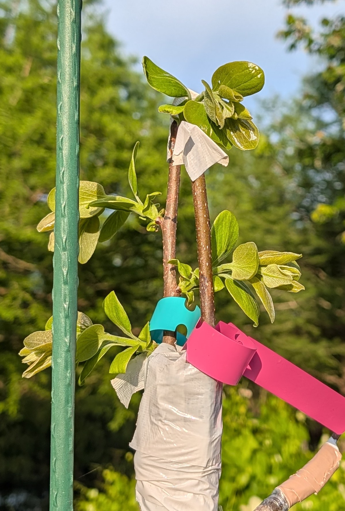Thanks! I hope I can keep posting as this grows. Itâs in a fenced yard in a neighborhood with no deer. Biggest offender so far has been a mockingbird that would rather land on the graft than the stick/pole I provided.