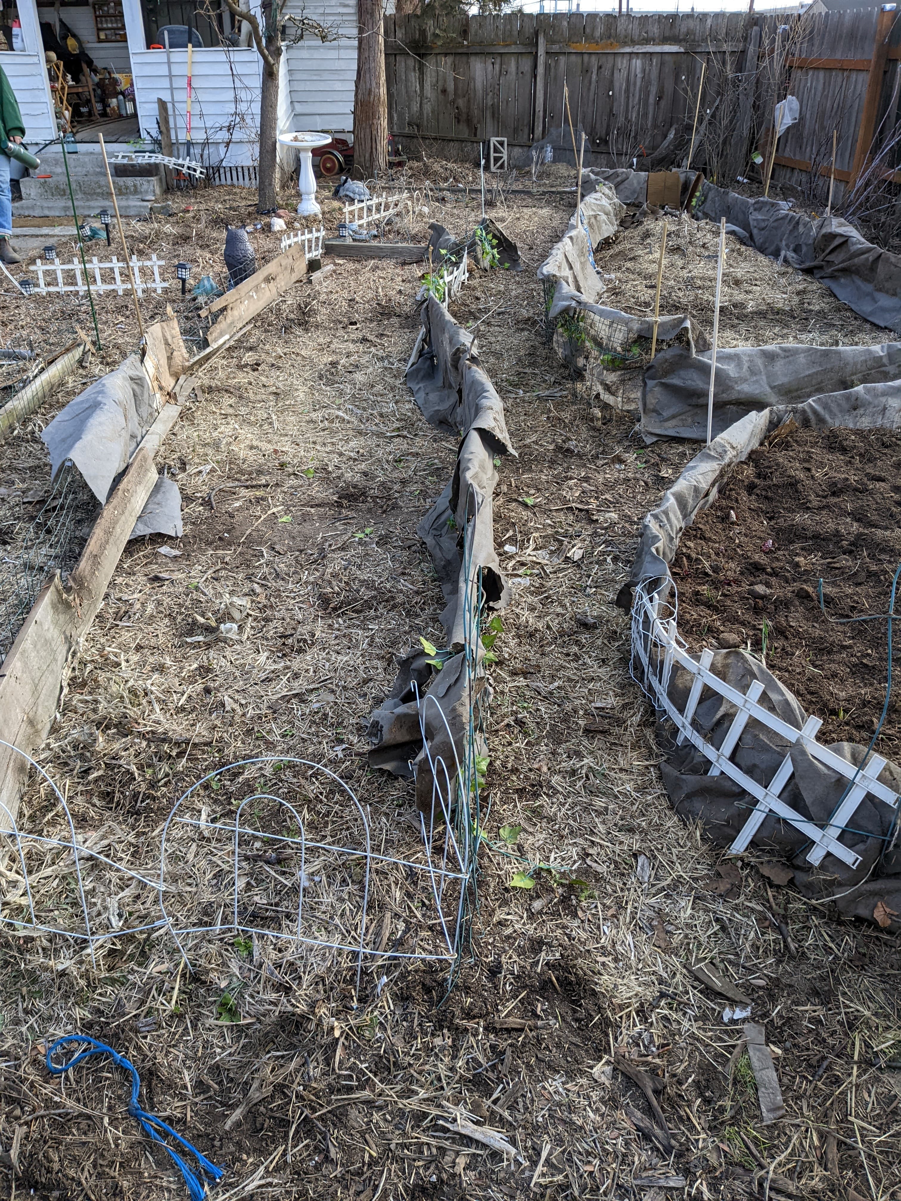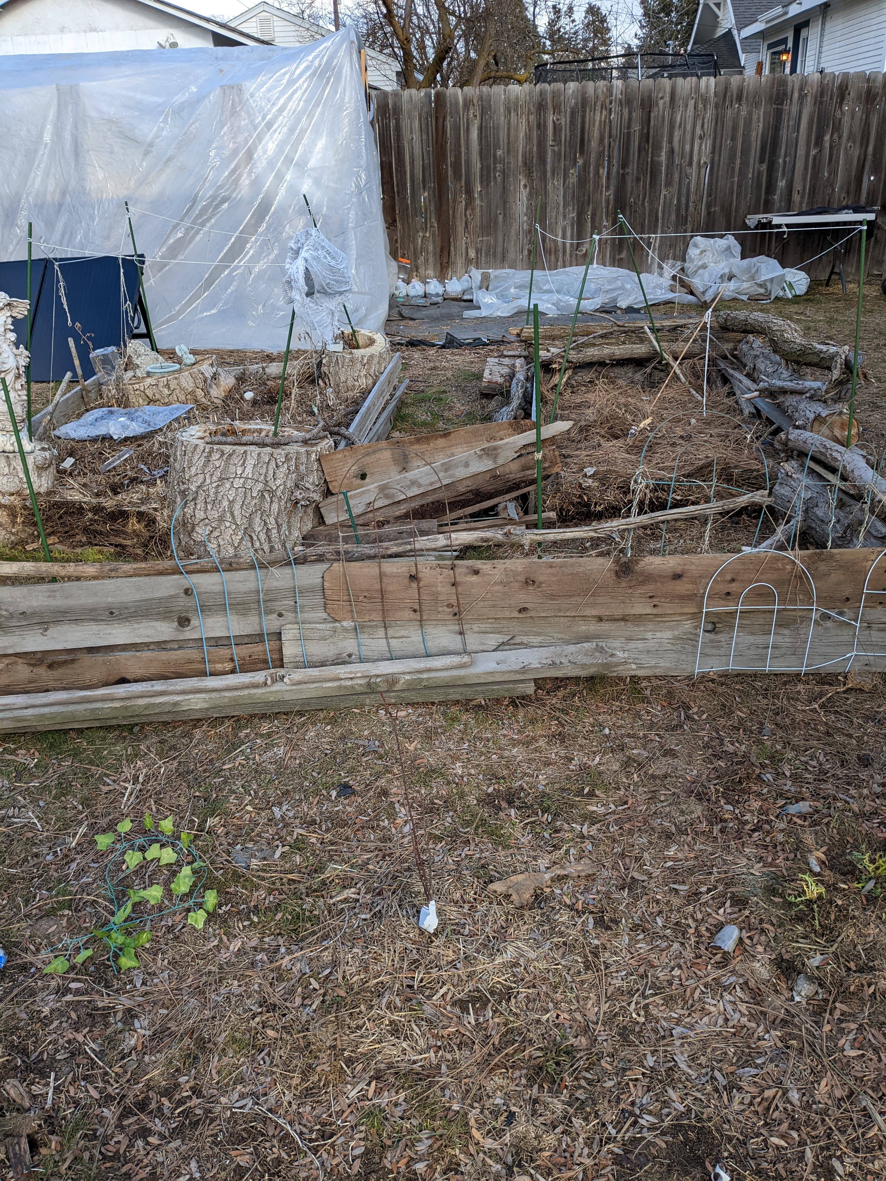I really do just use any old junk I can find in the alley to make “sides” for all this. they’re really just big piles that have junk tied and staked around them. the two I did last year (that keyhole one now) did real well, so I figured it’s a good way to do it. I don’t till I just add on top. last year I added soil conditioner and some regular “raised bed” soil as the horse manure was too fresh.