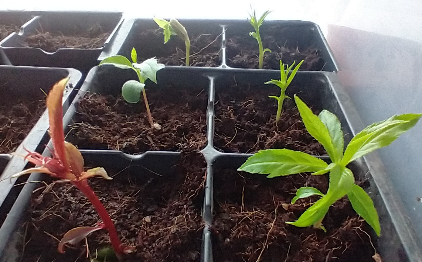 My project this winter is growing trees from seeds. In this photo are 4 nectaplums, a pluot and an apple. The 3 on the right and the red one are nectaplums, the other left corner is the pluot. I have a few more pluots. I’m excited to see what kind of fruit I get from these. I know they’re all hybrid types, so nothing will be the same as the parents, but I still think I’ll get good fruit. I might graft onto the apple.