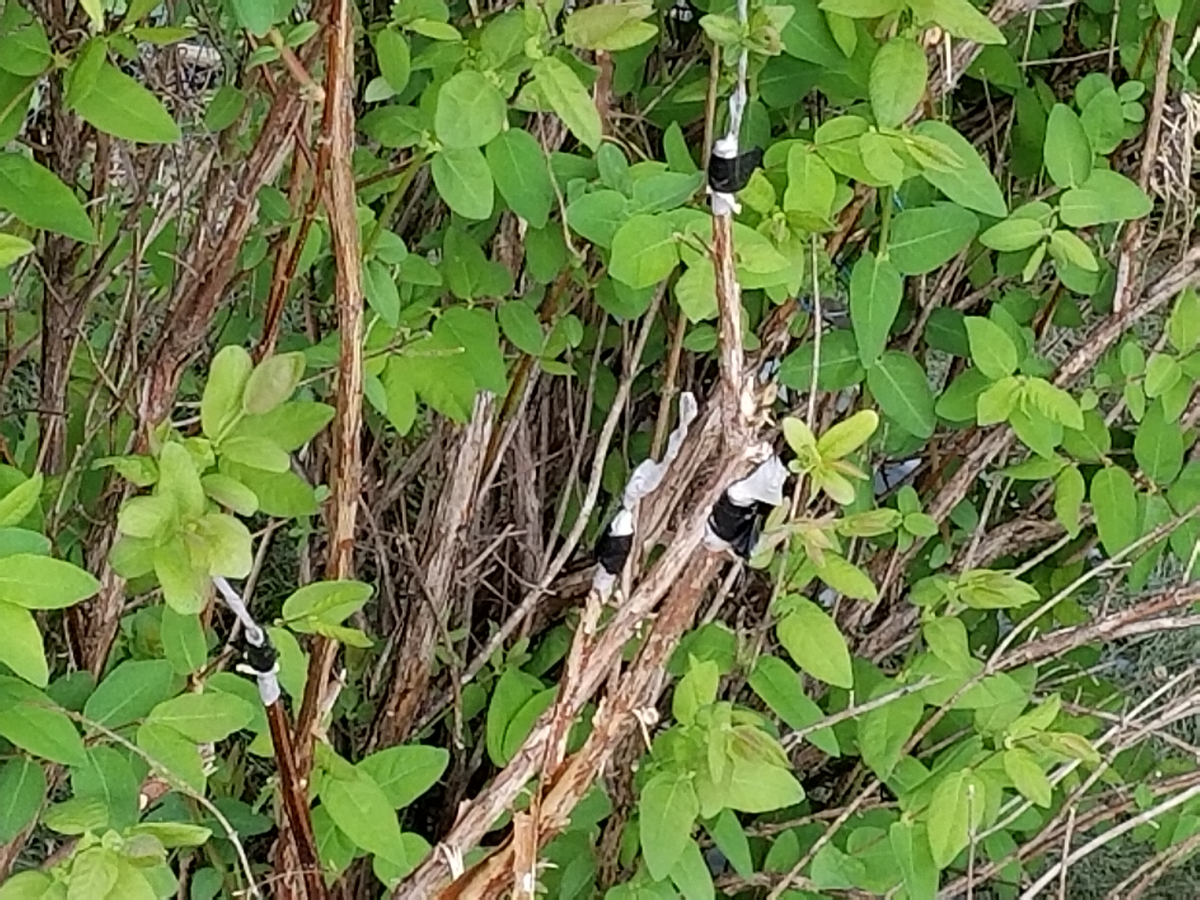 Its ok im just glad i did not order a couple hundred of them thinking i could plant out a field of them. I have a friend growing some in nearby lawrence ks which is an easier environment with rich soil. I may be able to buy some from him next year or buy from a better source. The price honeyberryusa charged was way out of line for what they sent out and i cannot recommend anyone from Kansas buy juliet cherries from them in the future. In this environment those cherries are a snack for a hungry beetle or grasshopper. Had i known they were not hardened off or awake i would have never bought them at that time of year in Kansas. I thought with the rain they had a chance but once the 90 degree weather arrived and rain stopped it was over they did not have enough time to acclimate to Kansas. The romeo looks ok so far but it had mature wood. Gurneys cherries eg. Carmine jewell are the same size but they come potted and awake so they typically do fine.The drying winds blew today and small plants have a difficult time with that wind drying them out. The wood is still tender and roots not developed so all the water in the world could not save them without enough roots to get the water i gave them. Even if i potted them out its the same problem and i dont have room indoors. This was a picture again of the juliet cherries