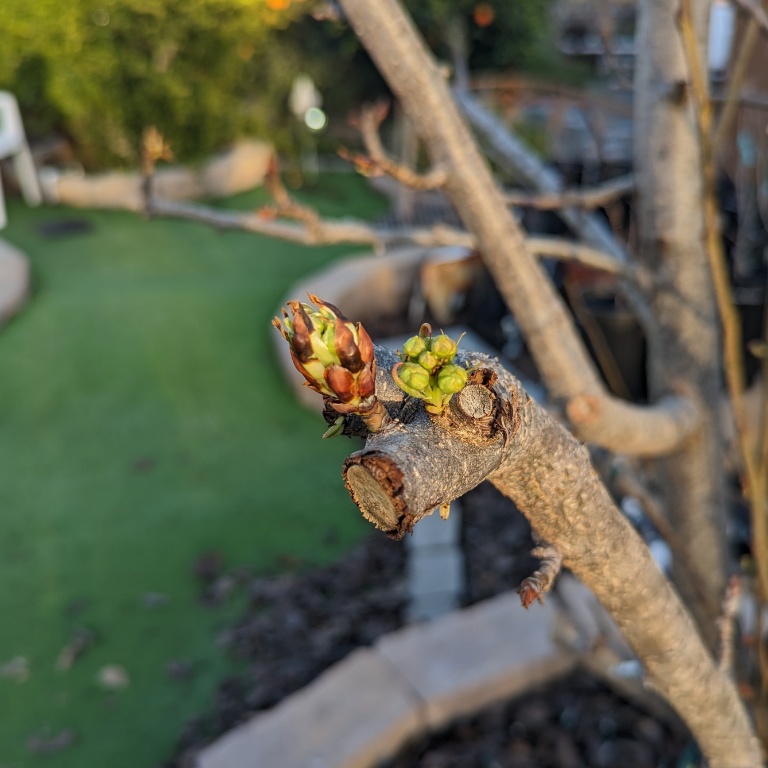 But this is just the first round of blossoms that occurs during January when we get warmer (60°F’s) daytime temperatures for the better part of a week. We’ll have more blooms later in a few months. The fruits will all ripen within a month of each other after the summer solstice.
