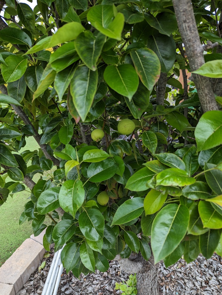 I only have Asian pears at the moment, so I’ll be relying on whatever self - fruitfulness Hood has to produce fruit.