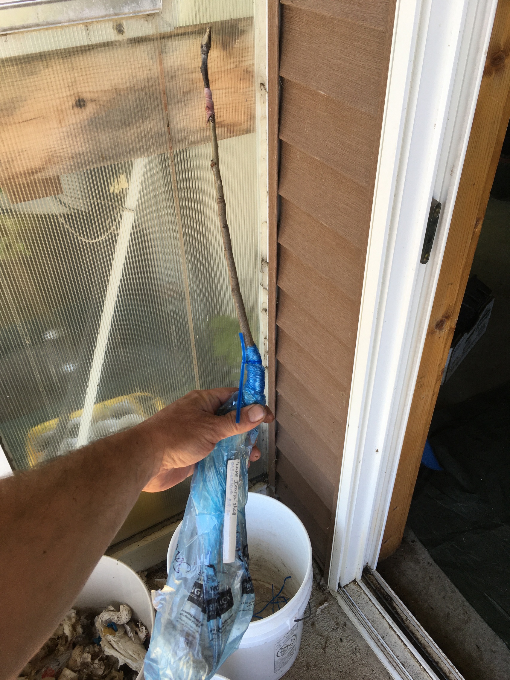 I took one of my persimmons off the pipe that was budding out pretty well. This is at 16 days. There are a few more like this that I’ll probably take off to green up under the lights. Most aren’t pushing yet and I’ll leave for at least 21 days. I’m just hoping there aren’t a lot of rootstocks with buds pushed inside the pipe that are robbing energy from the graft. I did find two like that, but don’t want to mess with all of them and disturb the healing.