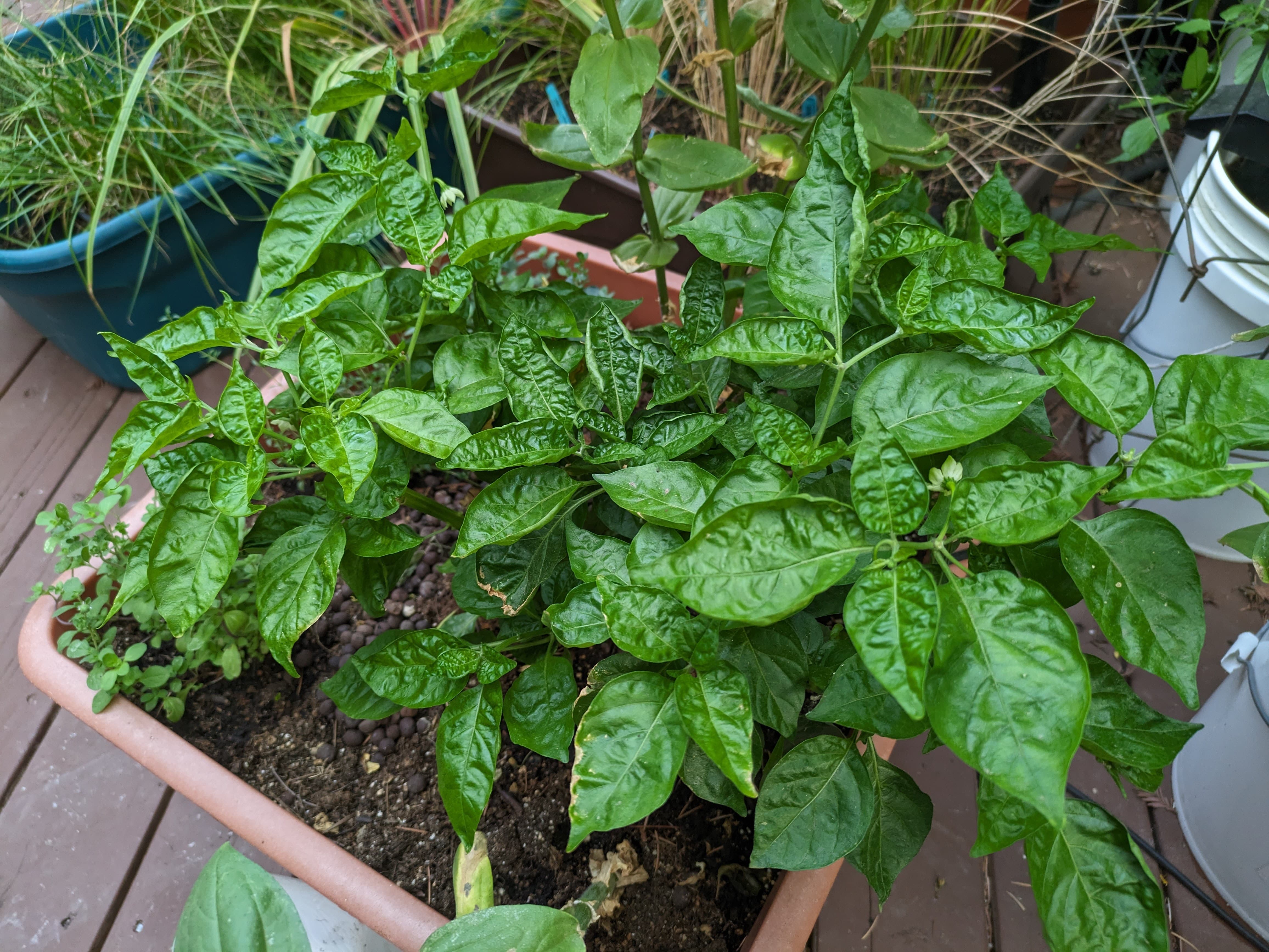 A locally bought Scotch Bonnet; seems to be producing nicely! Heat is nice, but the aroma is not quite right.