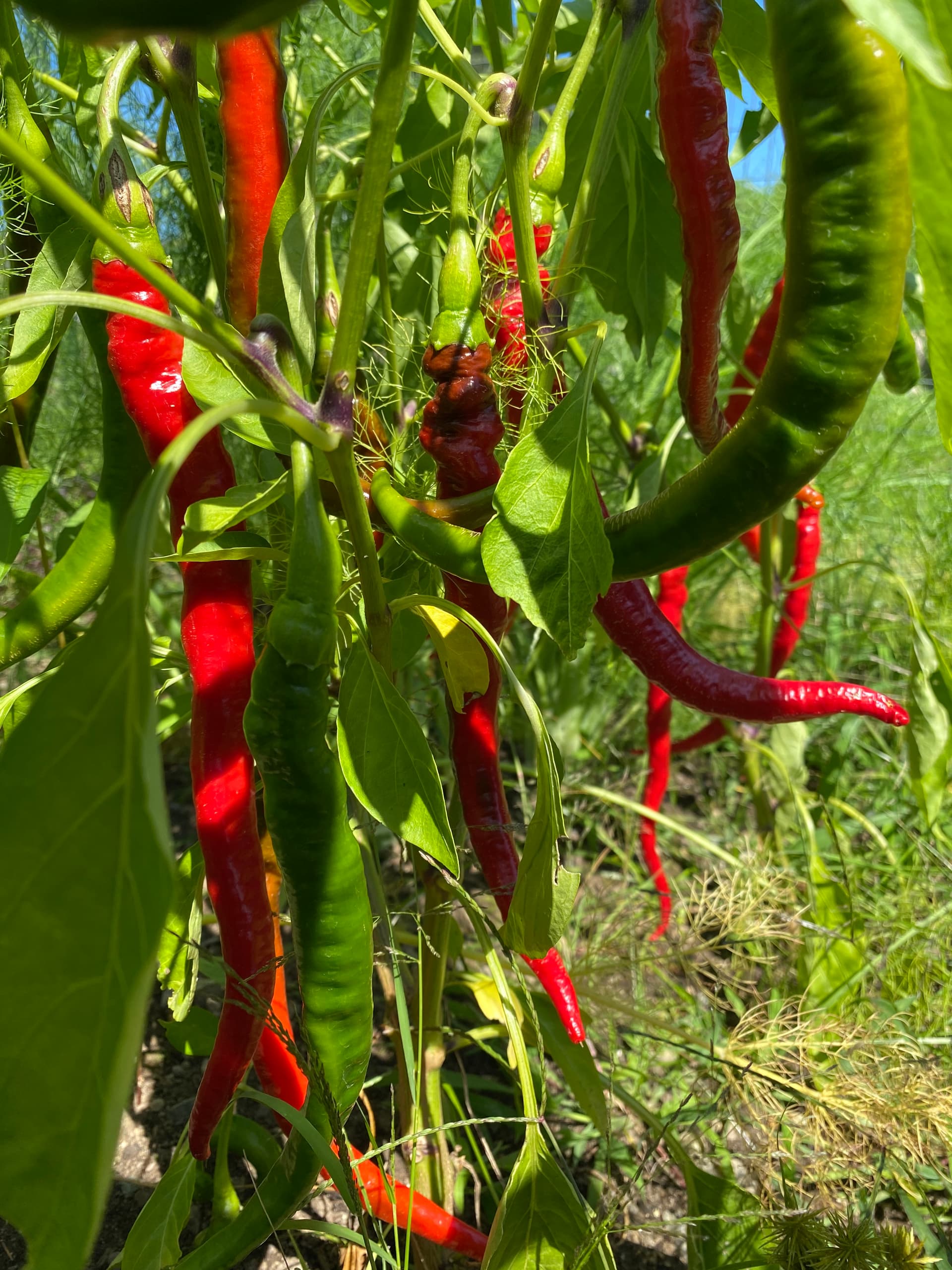 All my hot peppers are starting to ripen.
