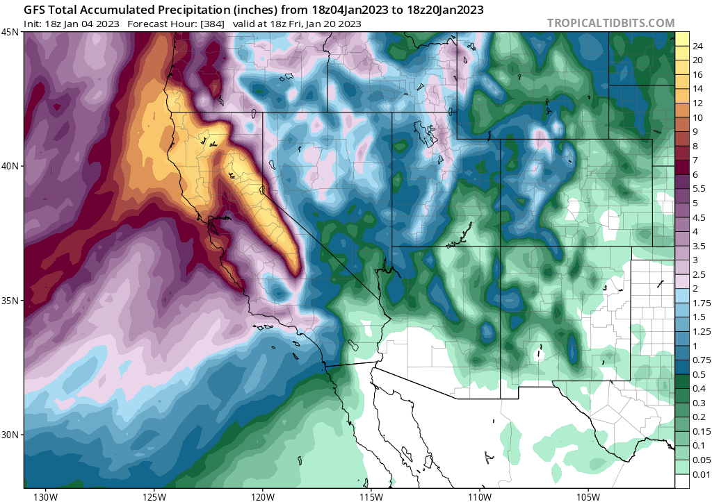 I see the media is calling the current one a “mega bomb cyclone”. Its almost becoming an SNL skit with these names. Does look very wet. California needed rain and they are getting it.