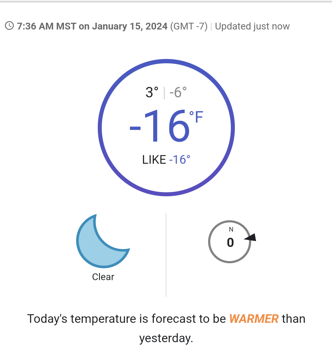 Temperature hasn’t changed much, remaining in the low 20s(F). Variable winds all day.