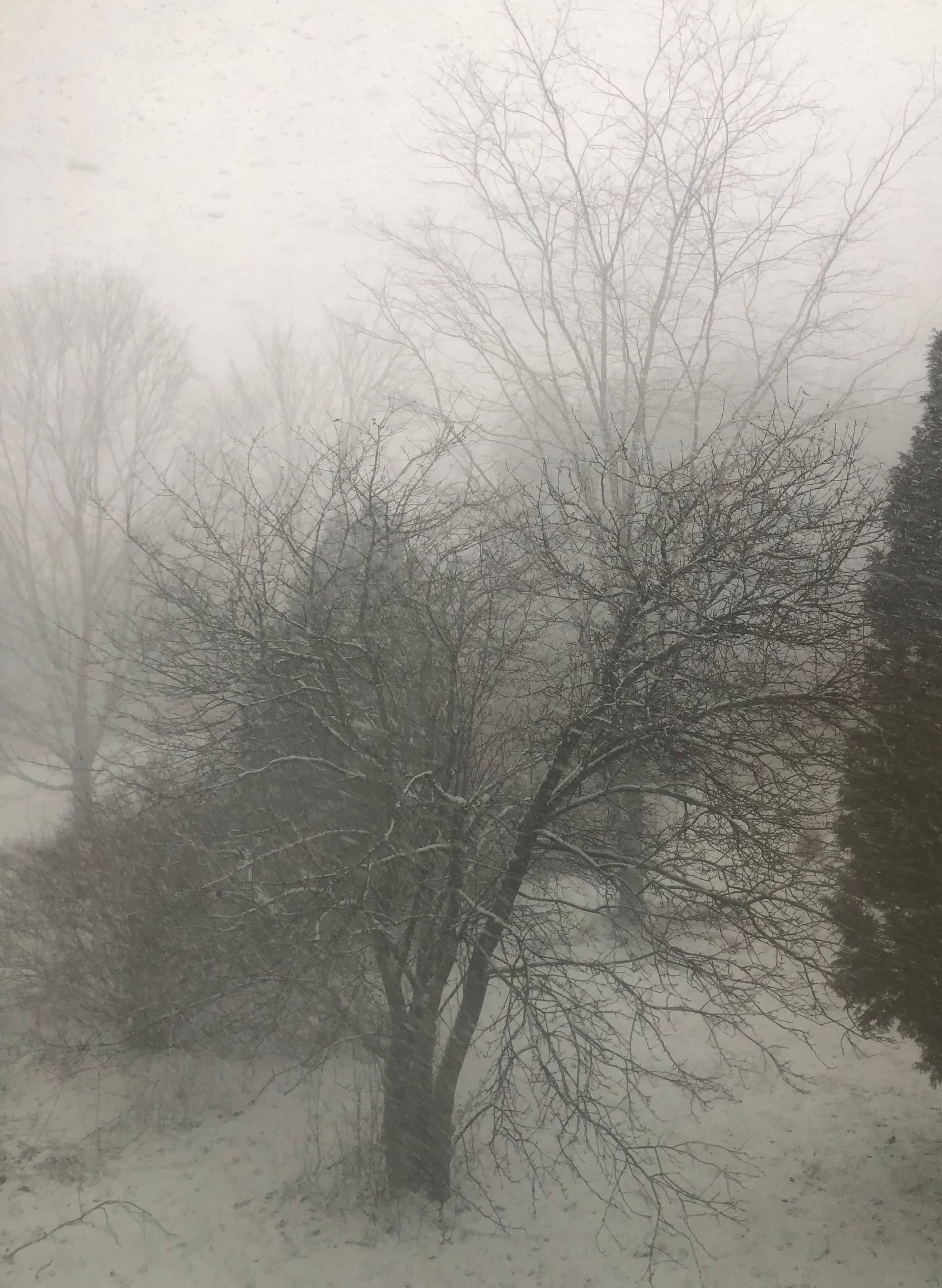 Third morning like this, I think I was justified in entirely burying the peach and nectarine in snow